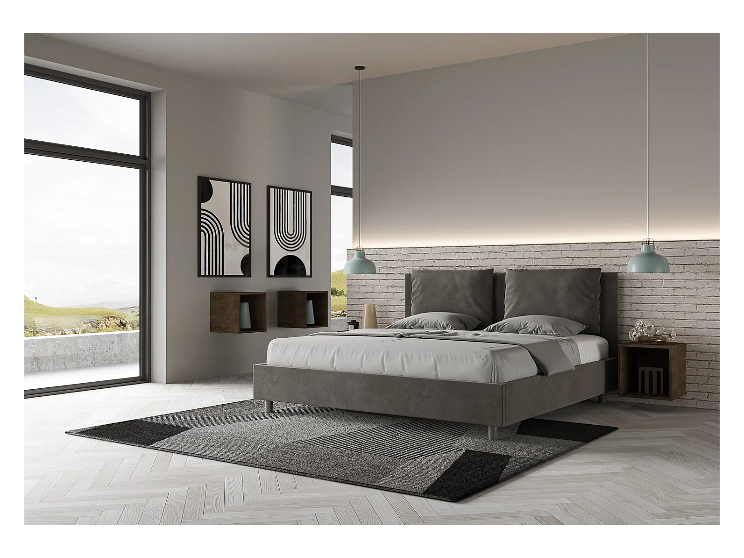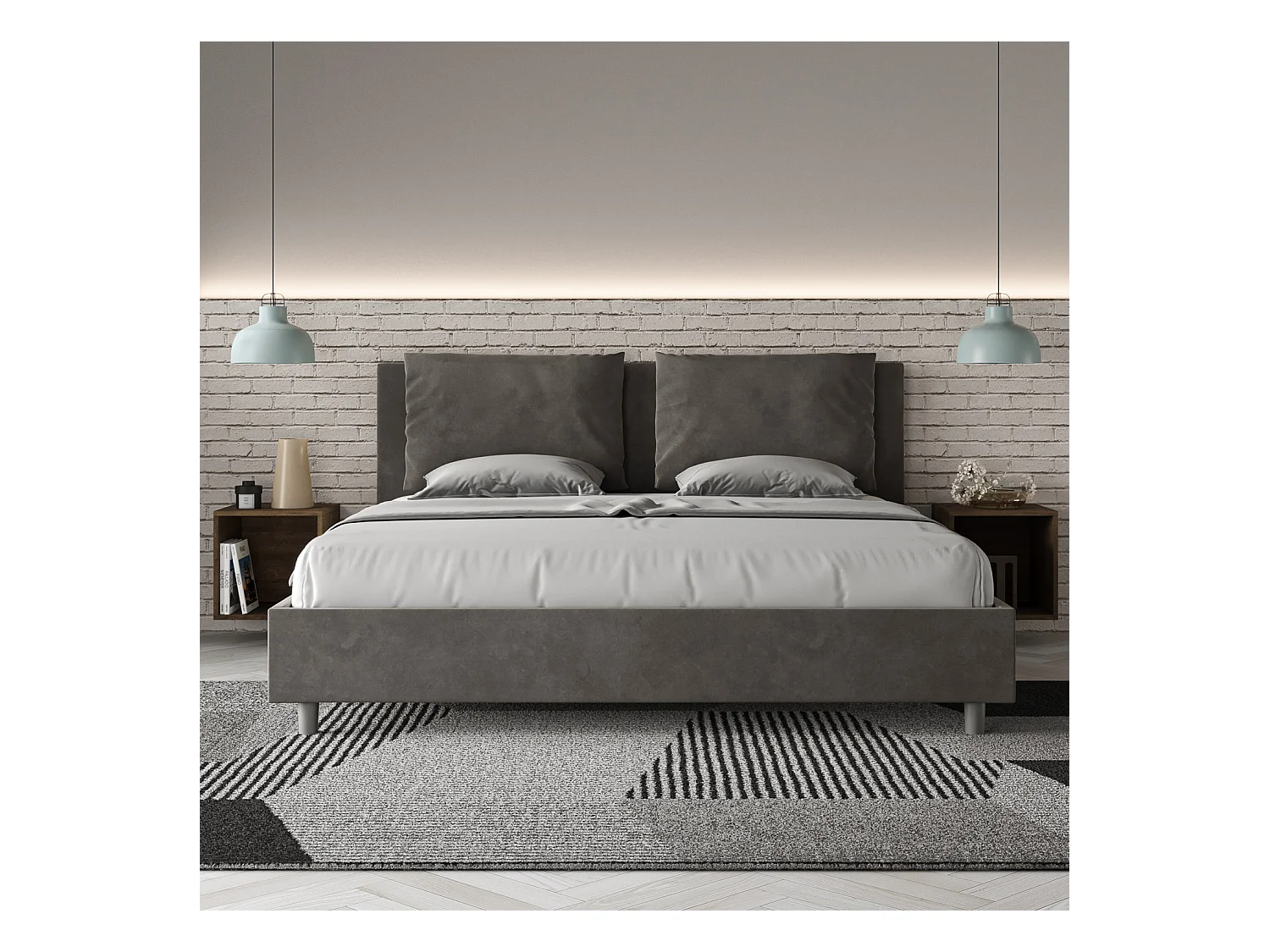 Lit avec sommier rembourré 180x210 microfibre gris Antea