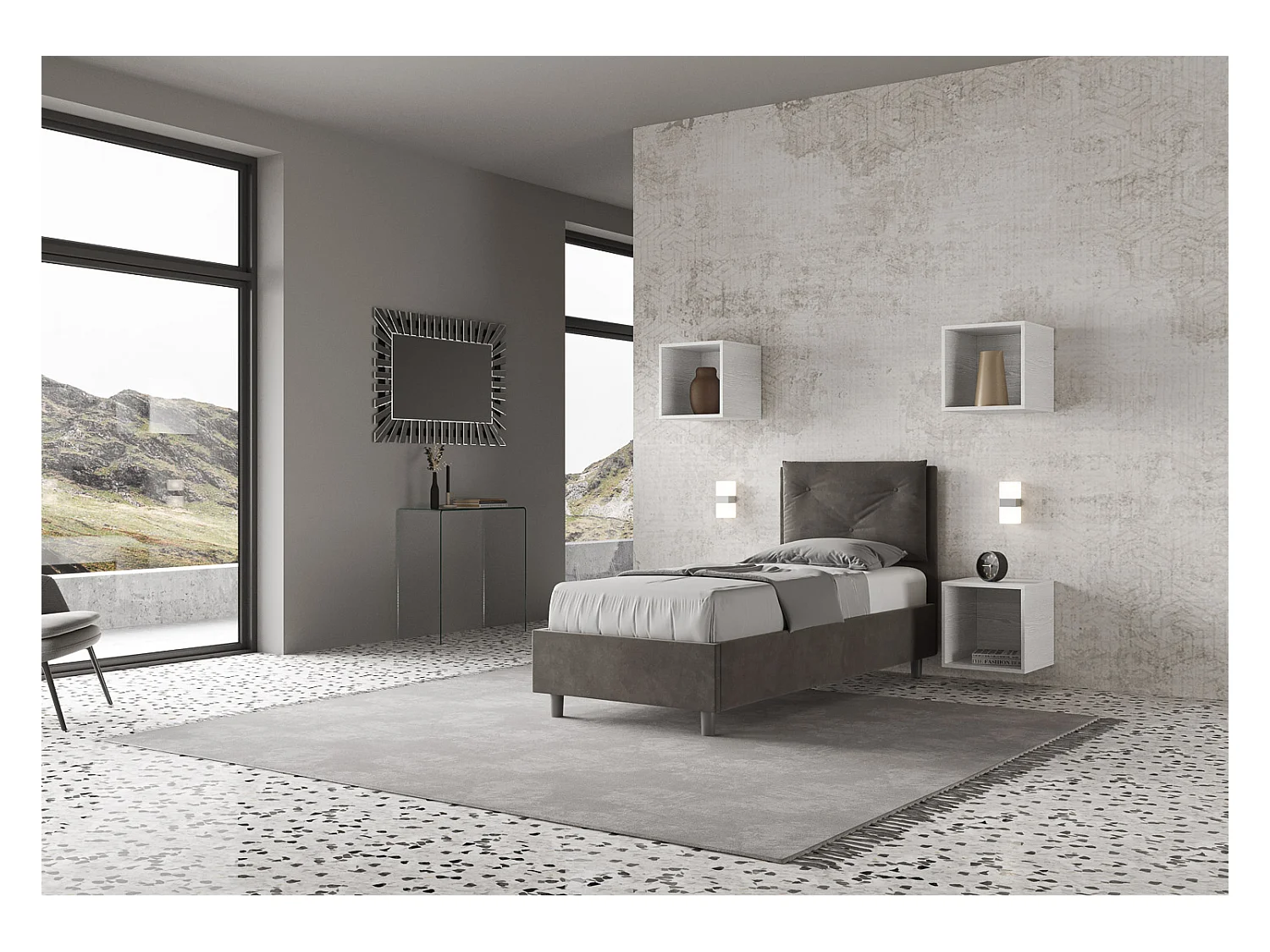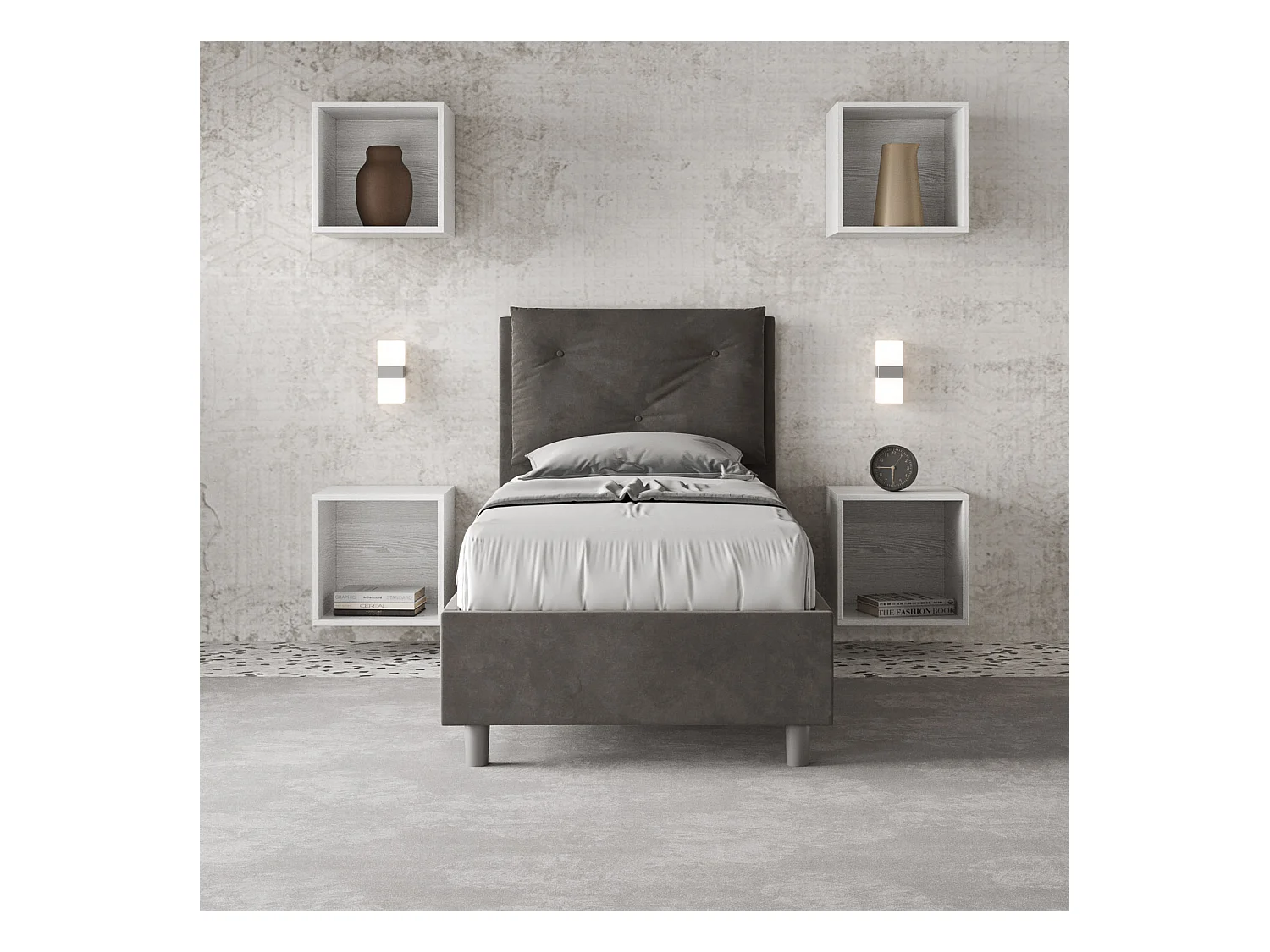 Lit microfibre gris Appia avec sommier rembourré 80x200
