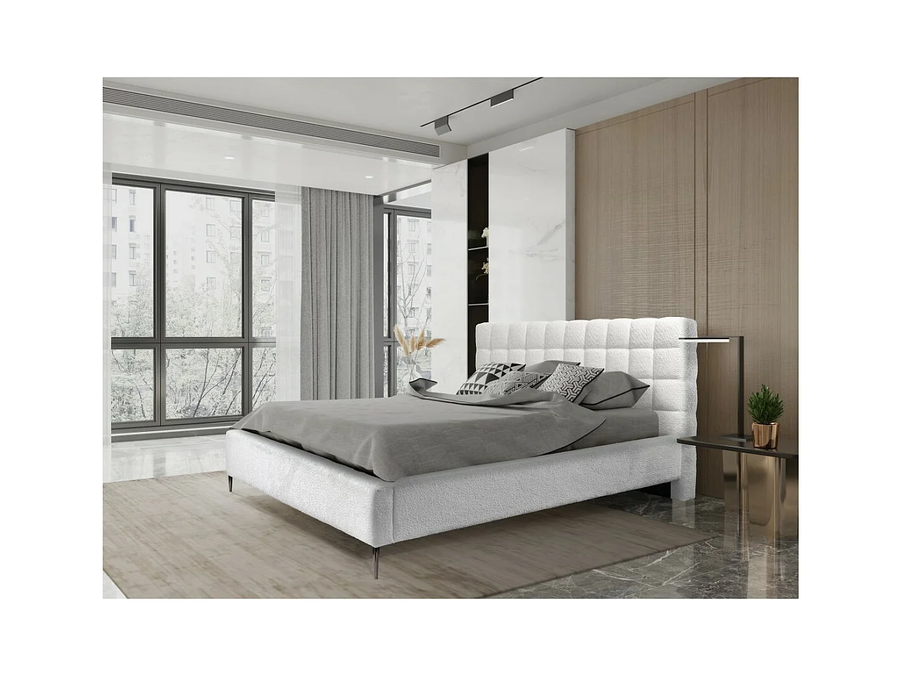 Lit MILLIO – Ivoire – 140x200 cm – Tissu chenille bouclé – Sommier inclus – Confort hôtel 5 étoiles