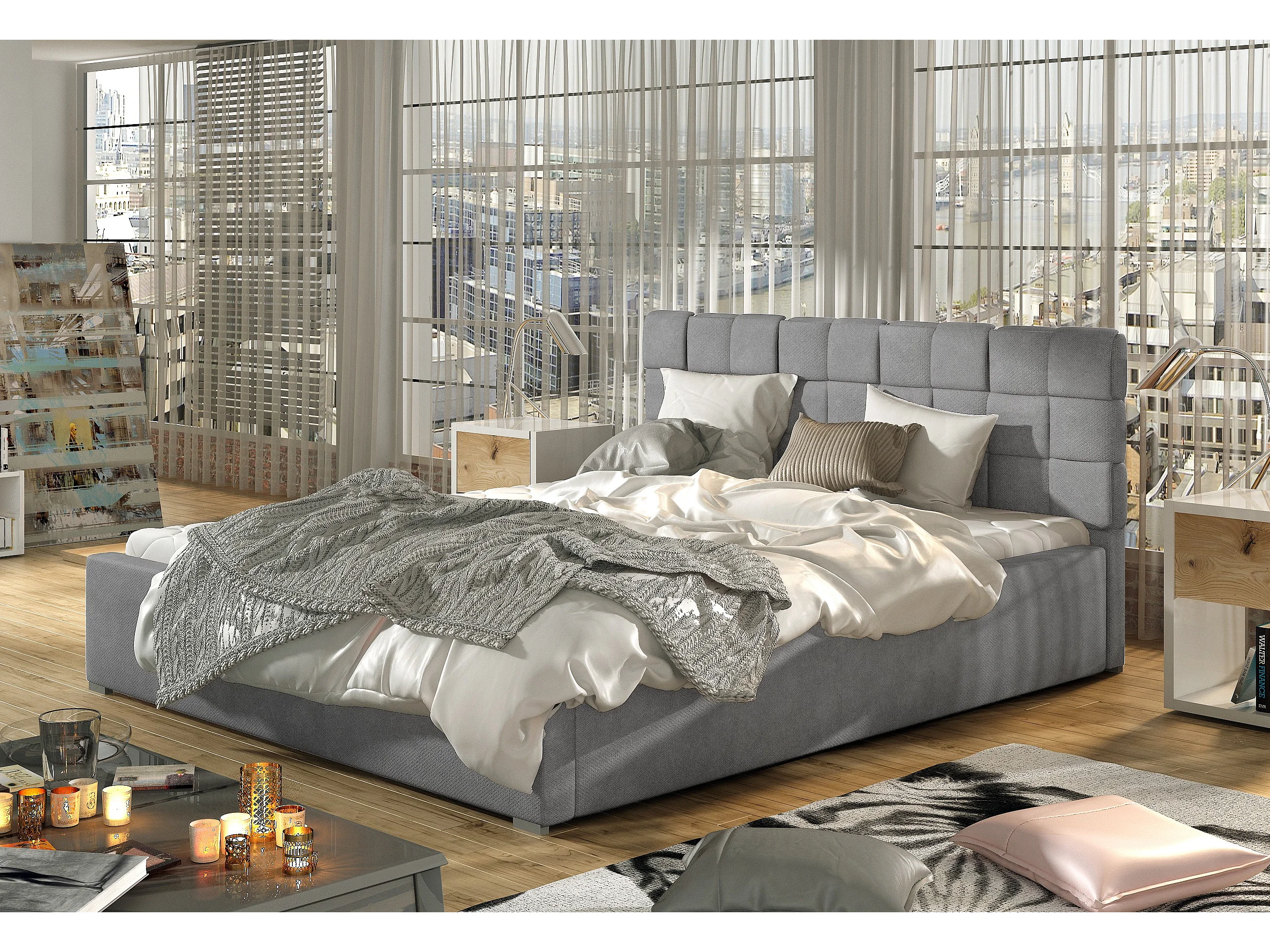 Lit moderne 160x200 capitonné velours gris Kandy