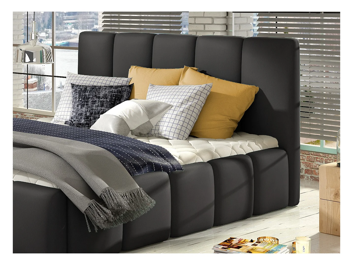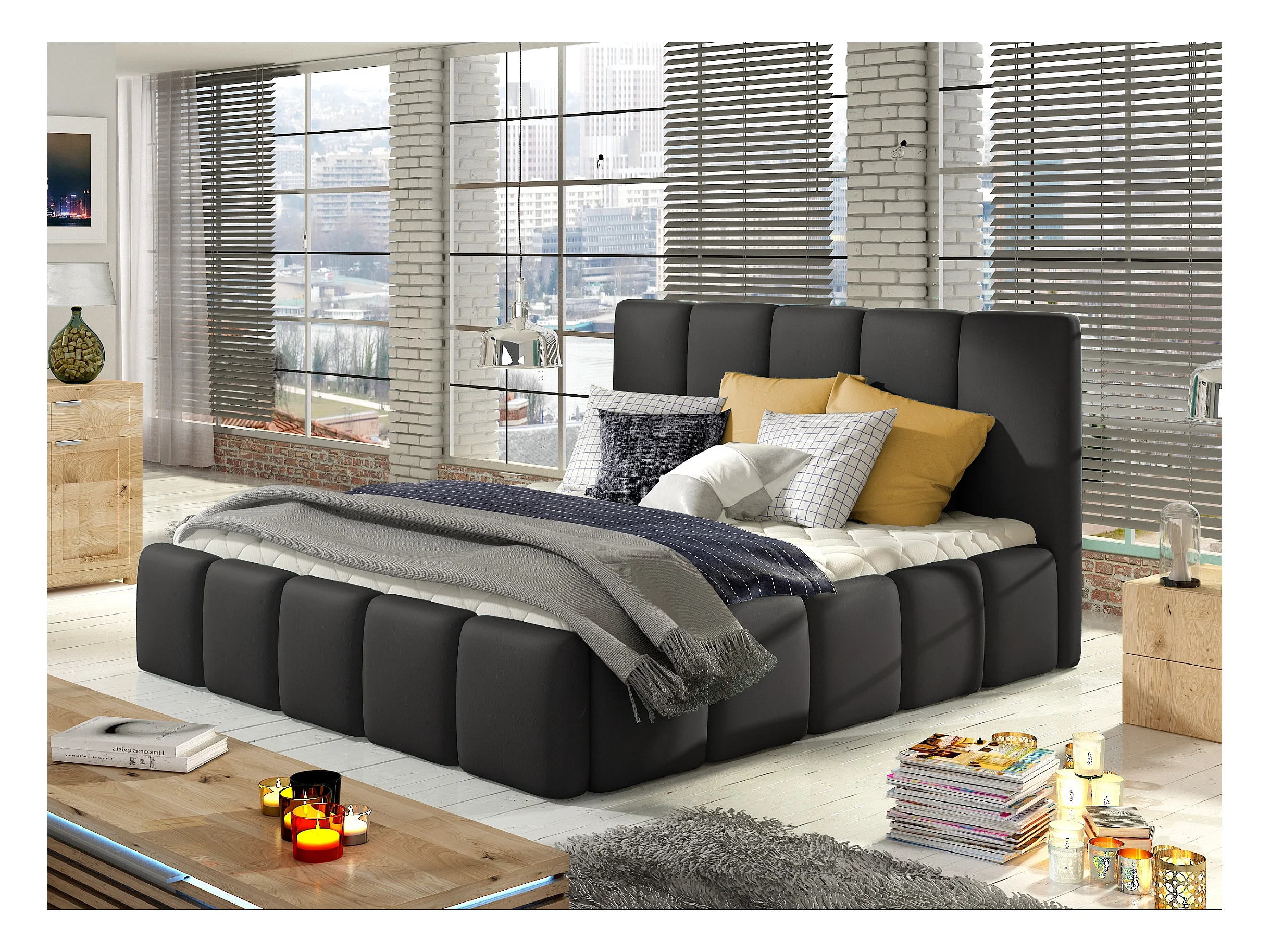 Lit moderne capitonné cuir synthétique Vika-Couleur Noir-160x200