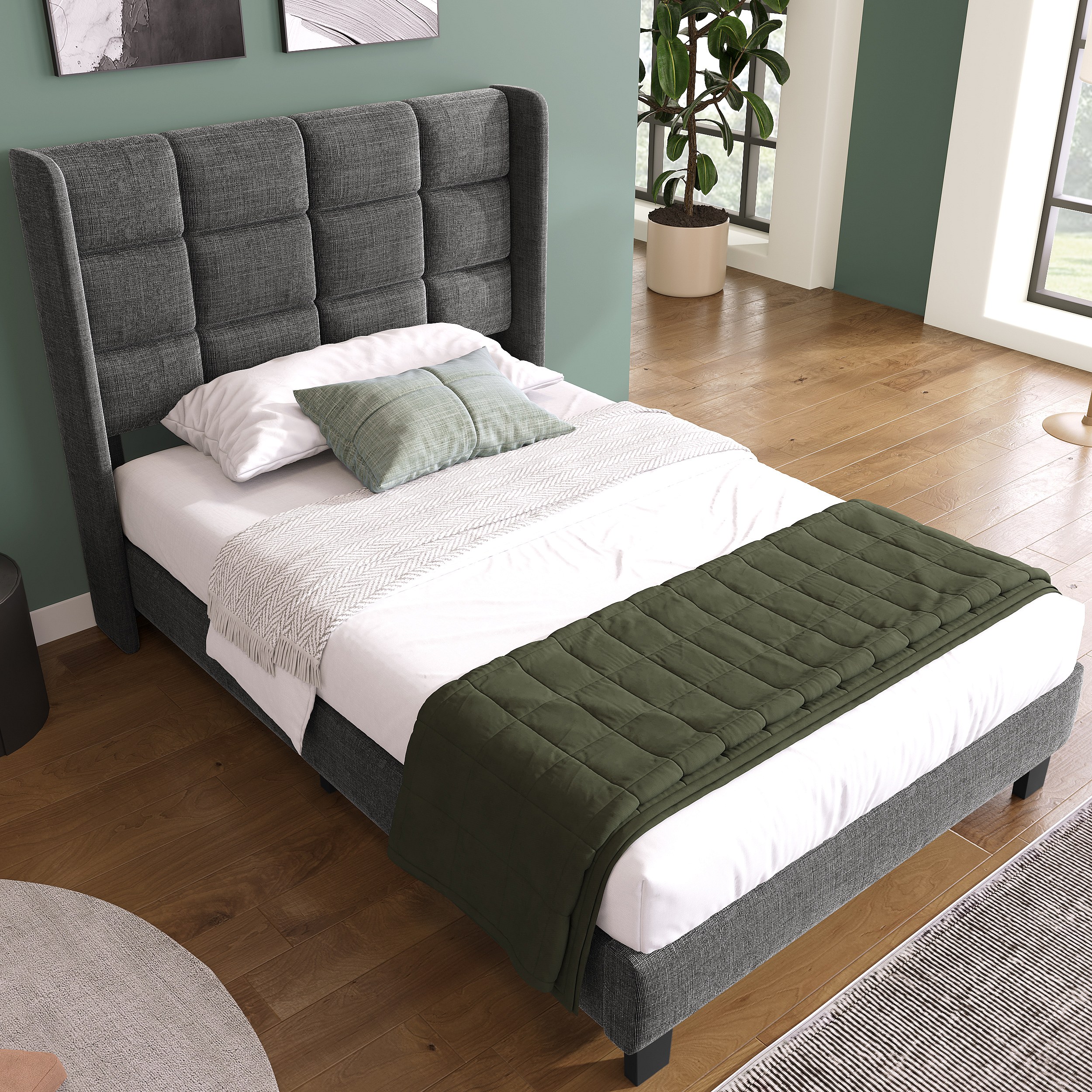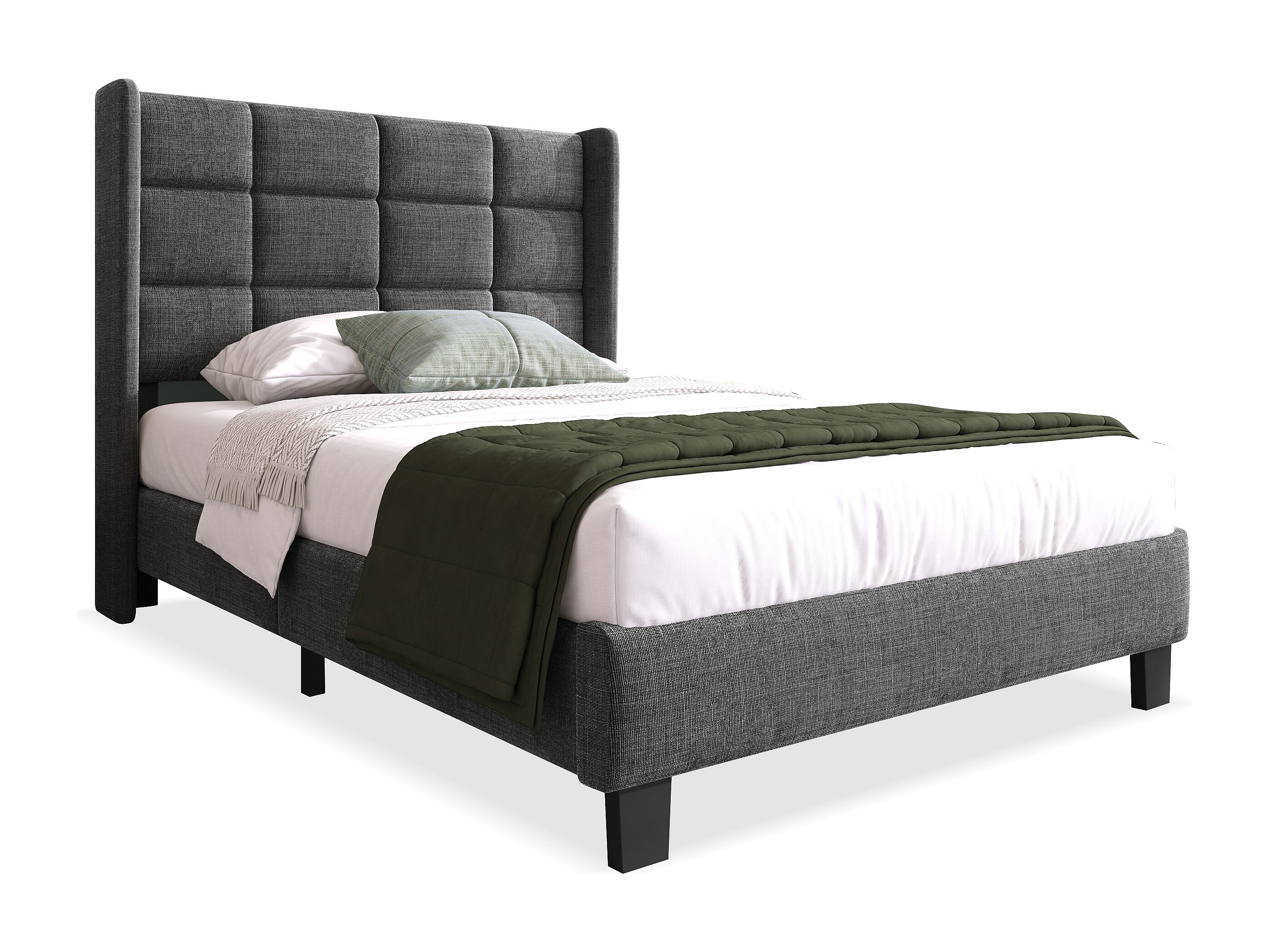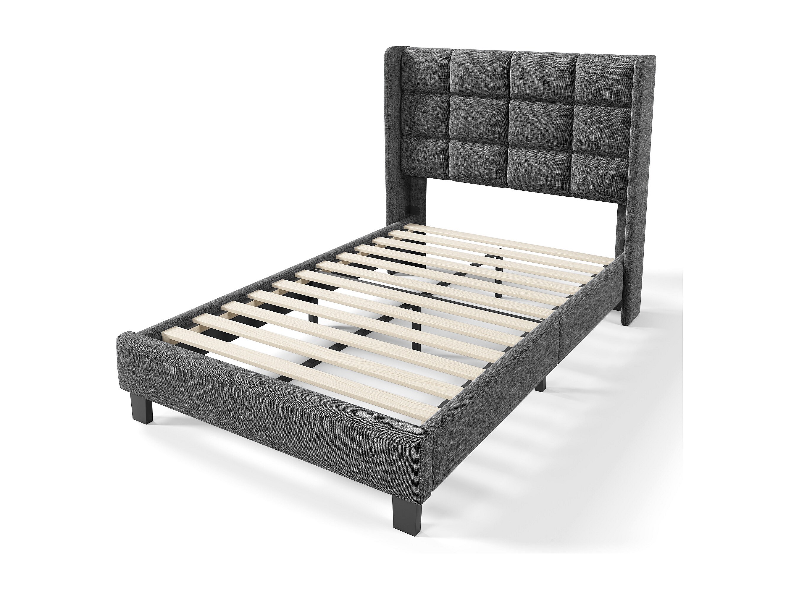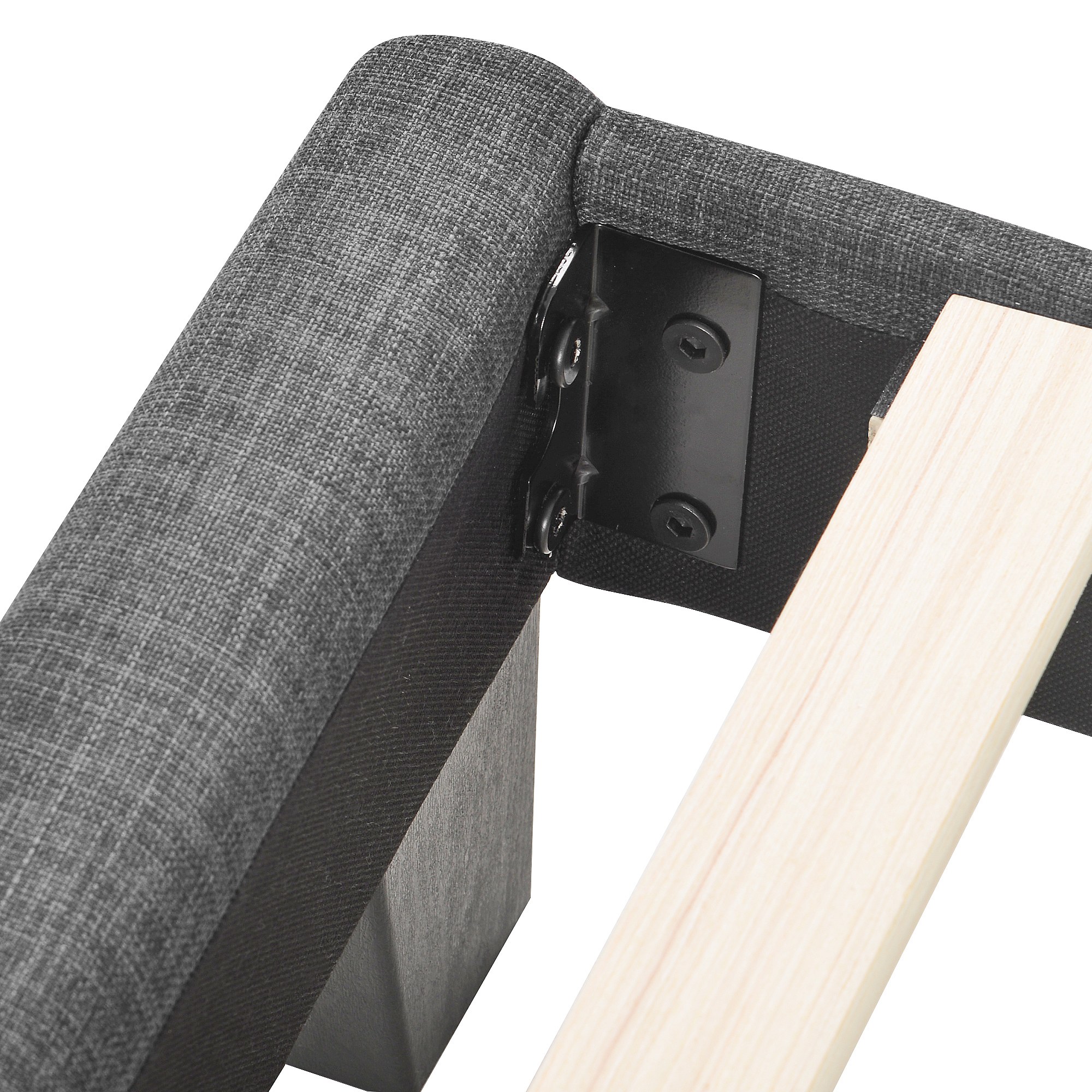 Lit moderne en lin gris 90x200 cm avec tête de lit rembourrée et lattes, sans boxspring