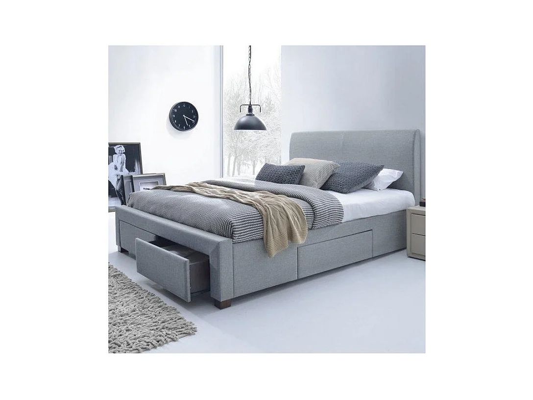 Lit moderne gris 160 / 180 x 200cm avec sommier Moreno - 140cm x 200cm