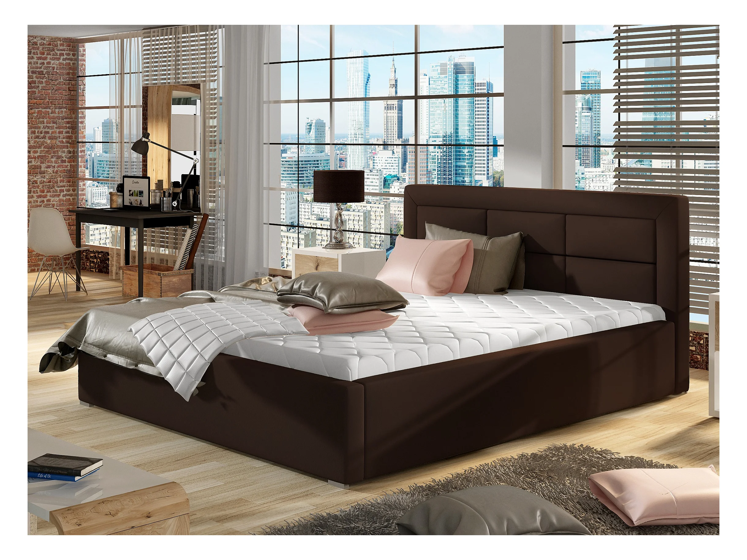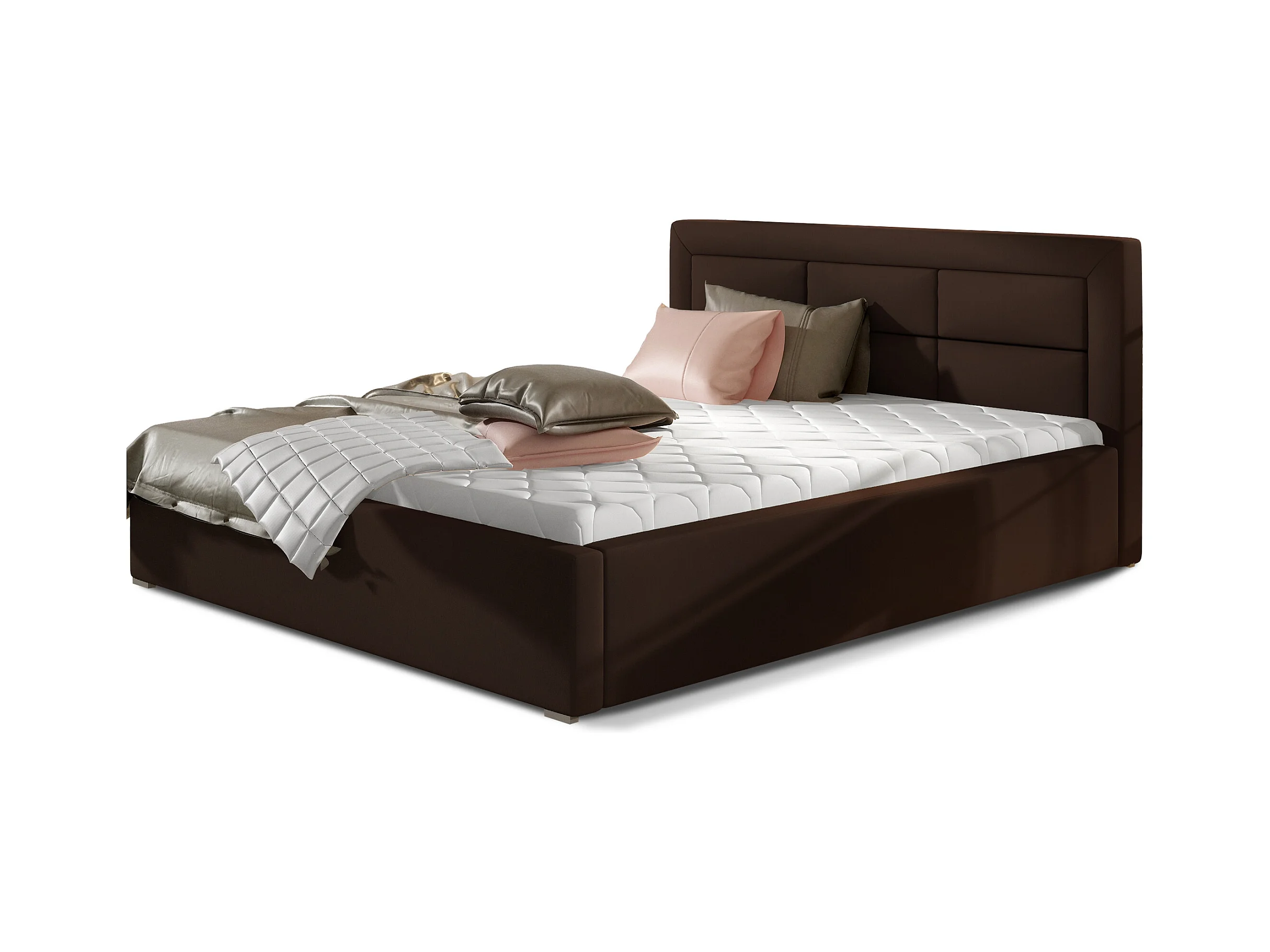 Lit moderne simili cuir capitonné Rizaro-Couleur Marron-200x200-Version coffre de rangement