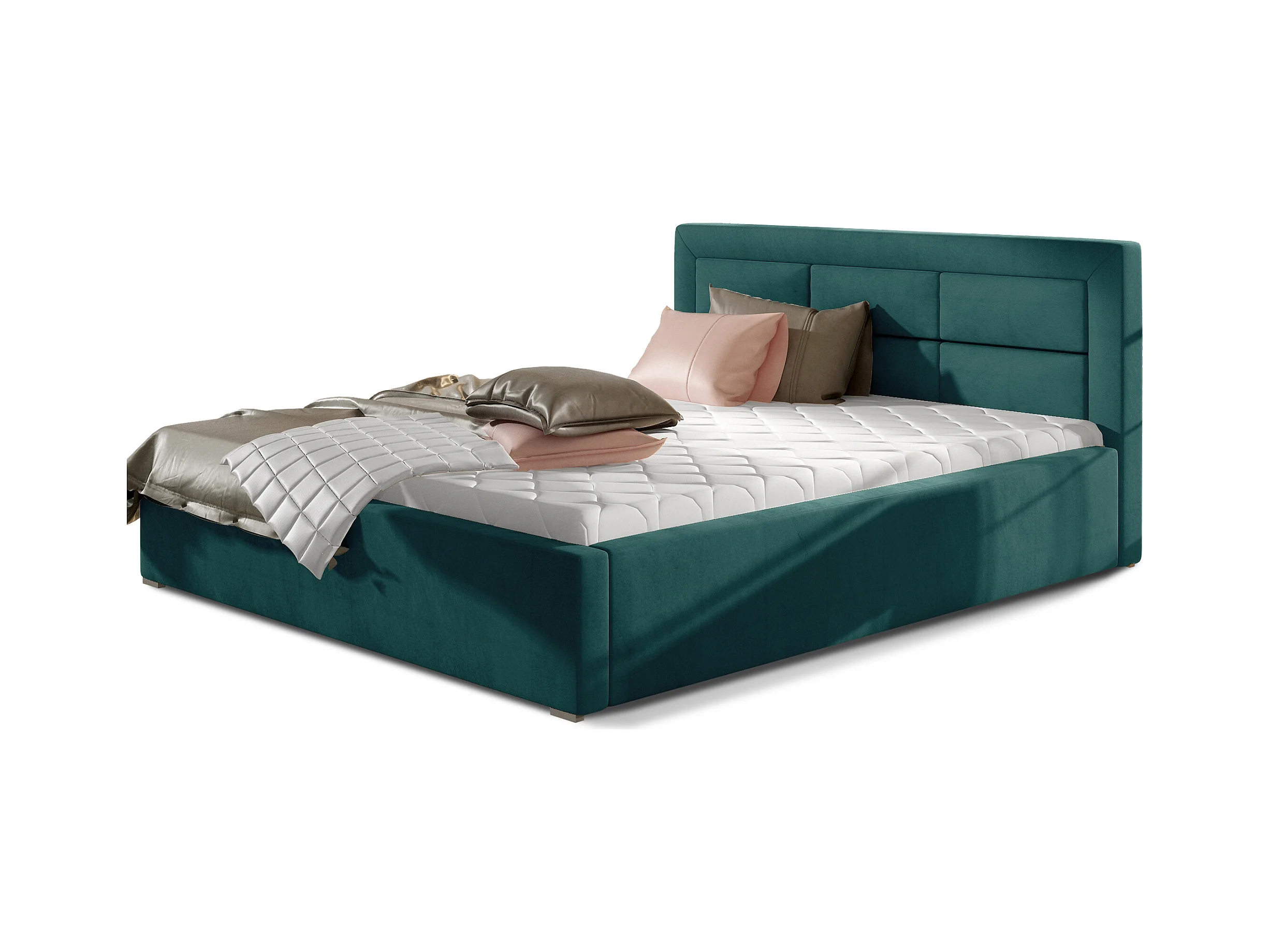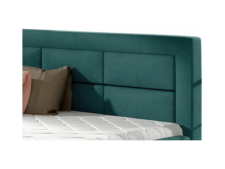Lit moderne velours capitonné Rizaro-Couleur Bleu canard-180x200-Version coffre de rangement