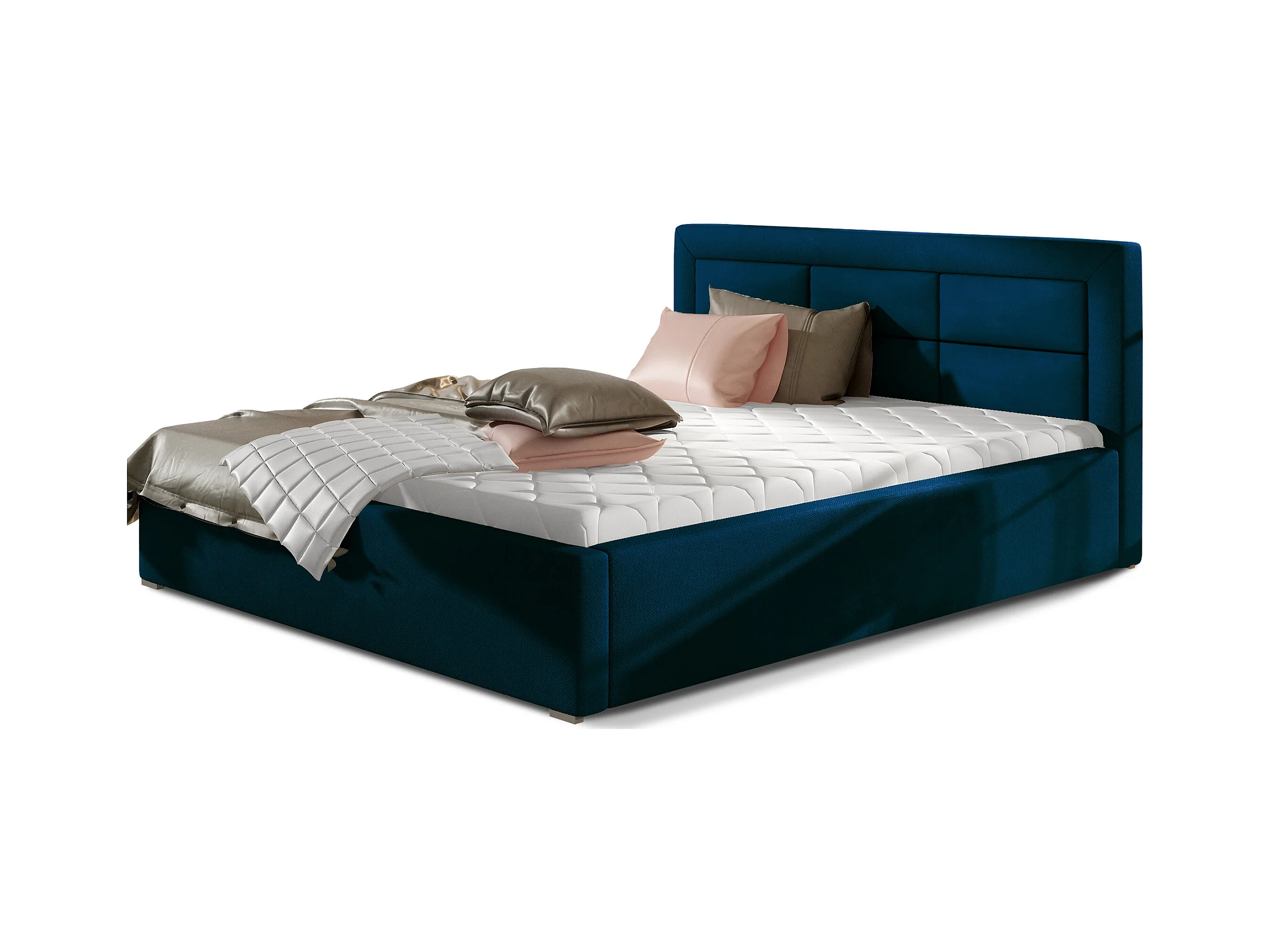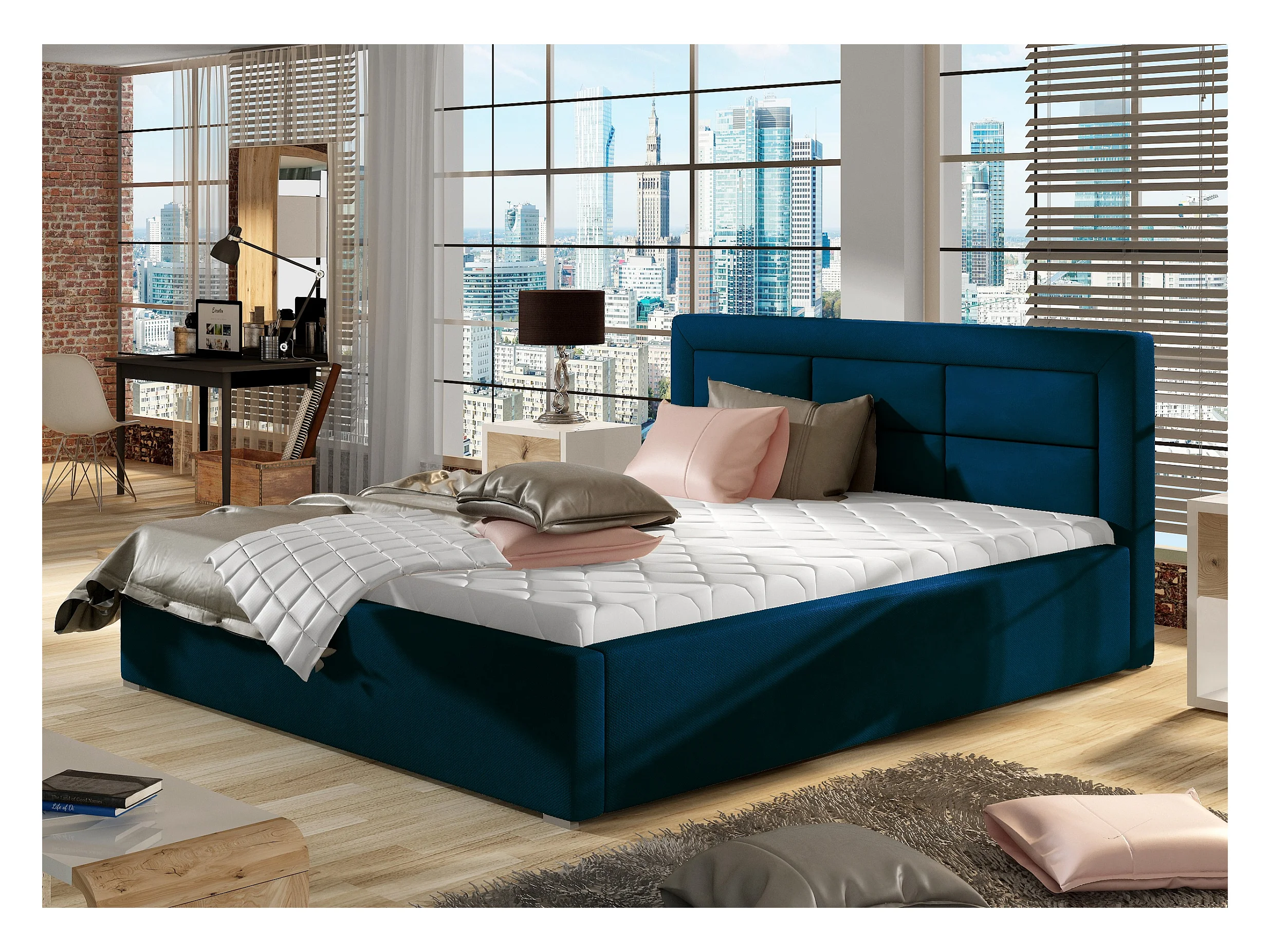 Lit moderne velours capitonné Rizaro-Couleur Bleu nuit-160x200-Version coffre de rangement