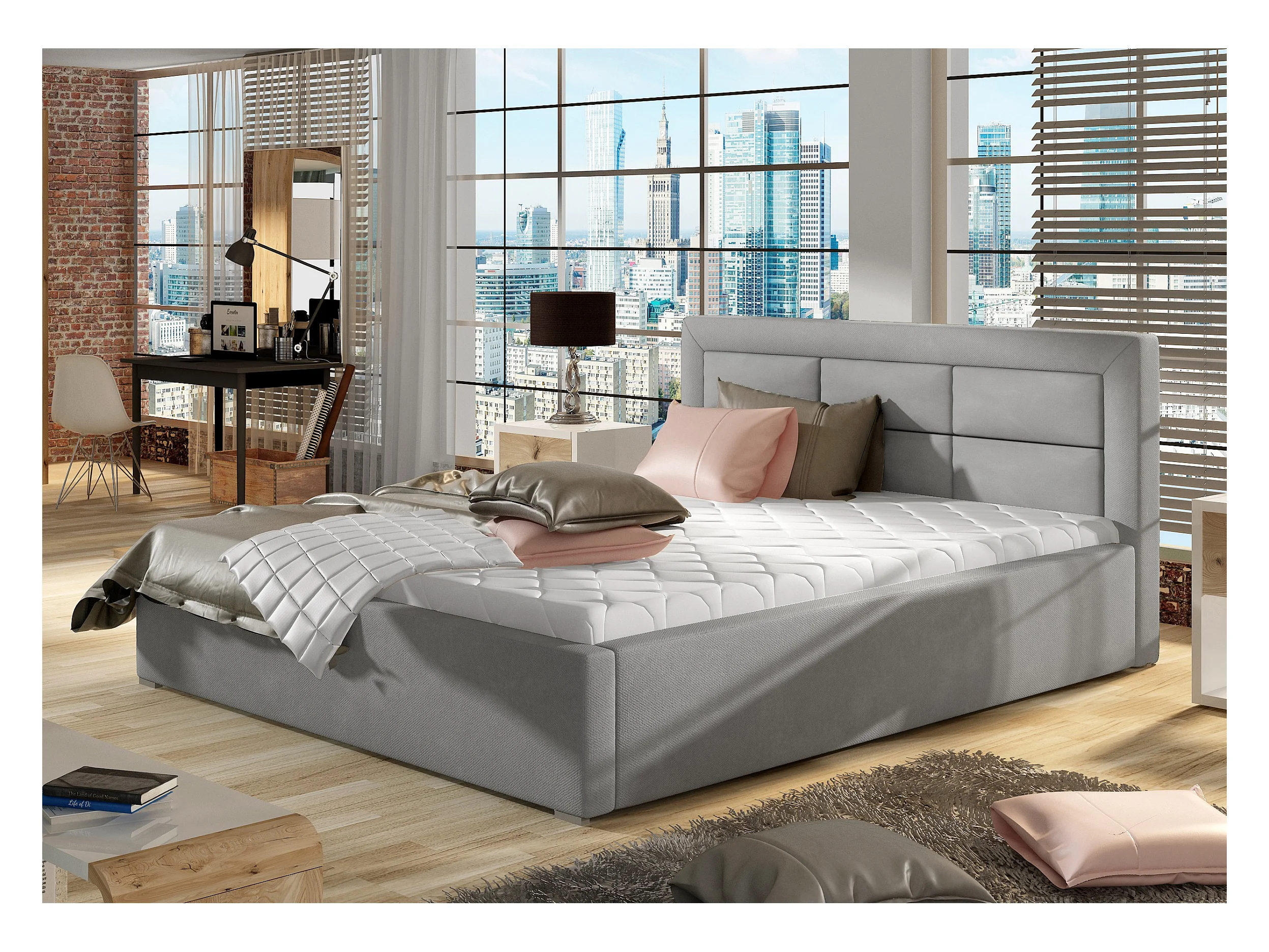 Lit moderne velours capitonné Rizaro-Couleur Gris clair-140x200-Version coffre de rangement