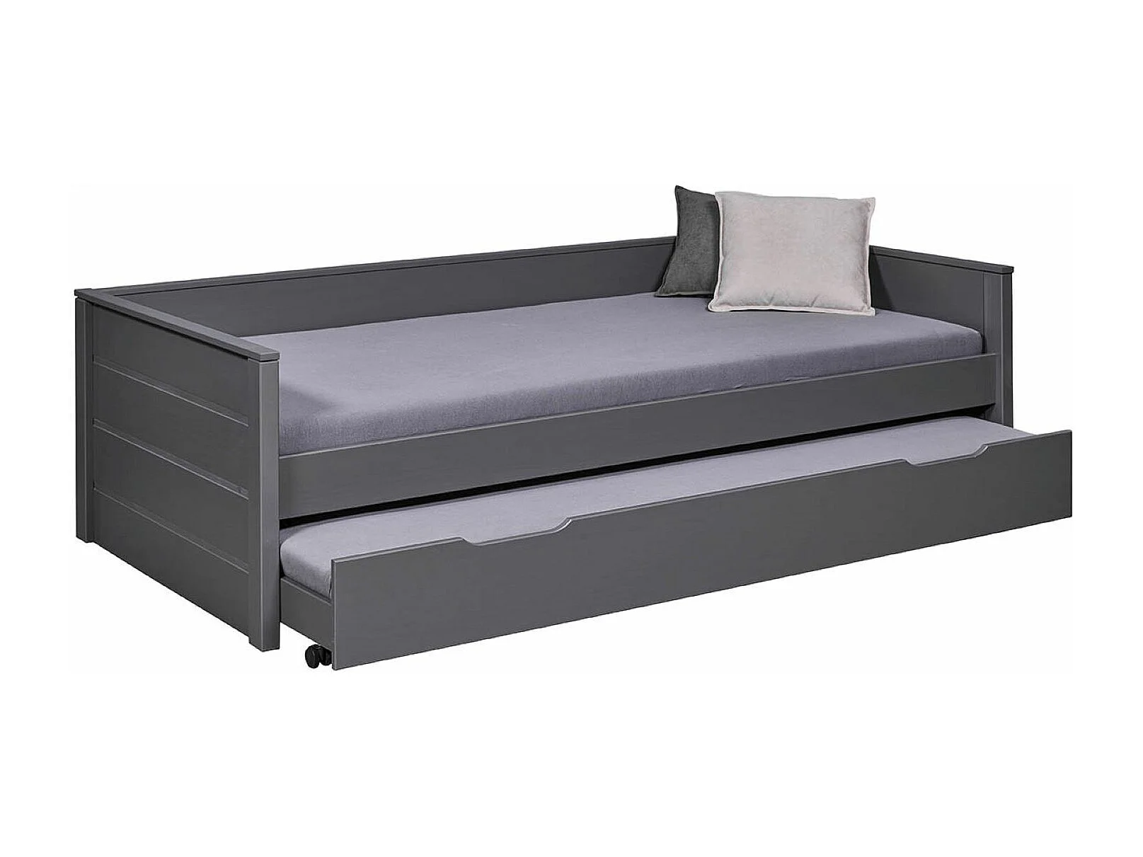 Lit multi fonction pour enfant en bois coloris gris, couchage 90x200 avec sommier - longueur 208 x profondeur 98 x hauteur 60 cm