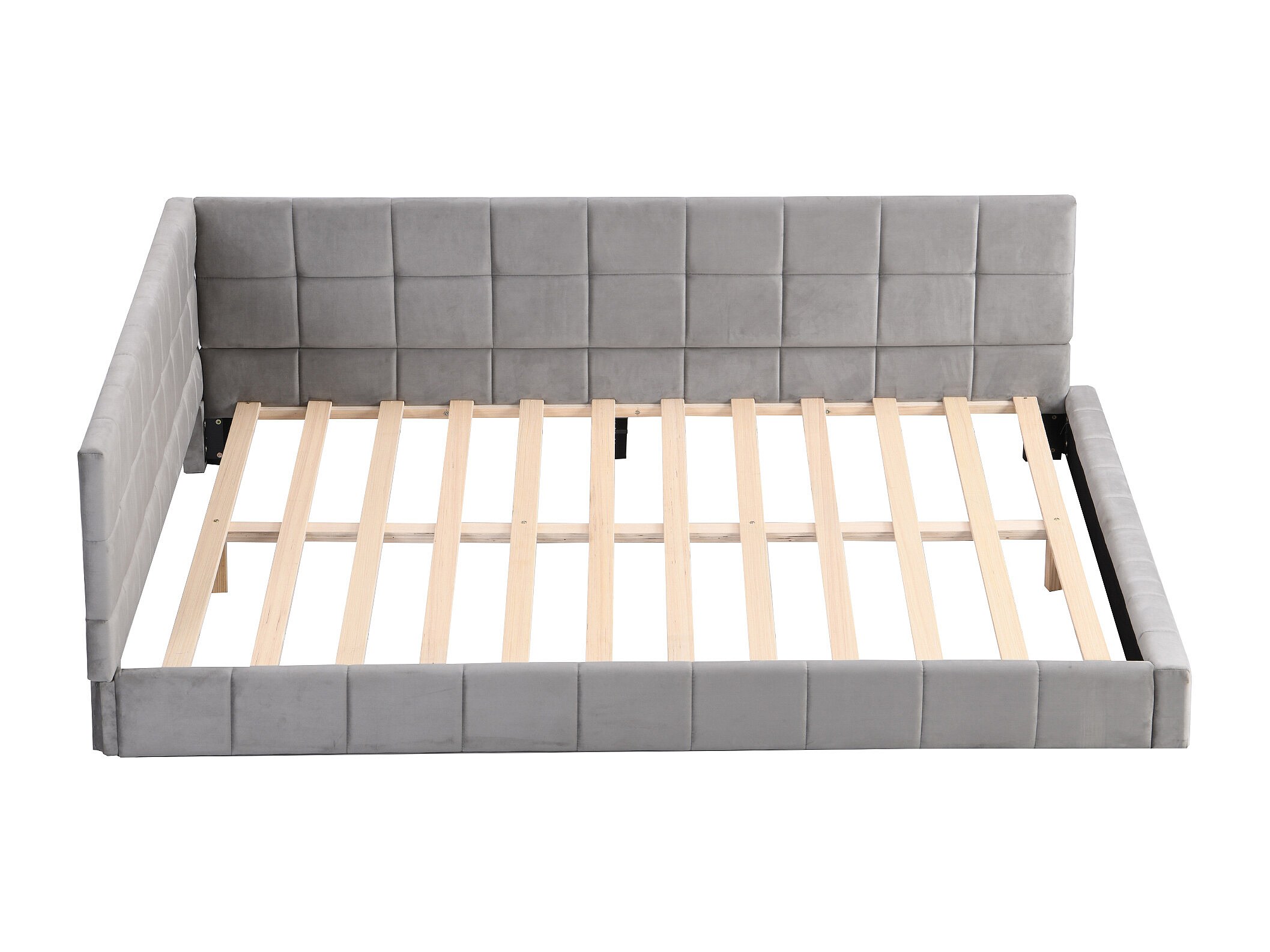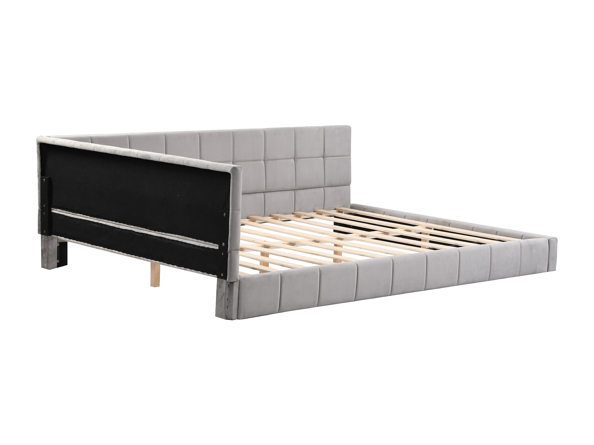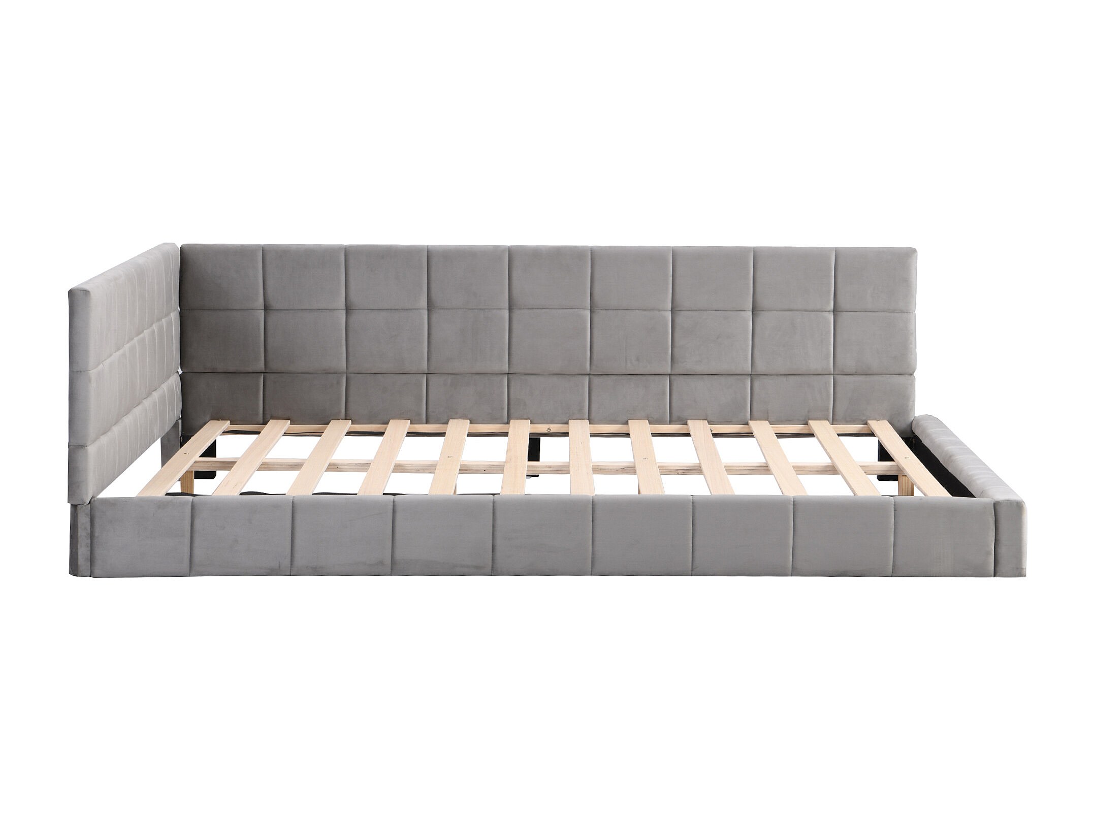 Lit multifonctionnel 140×200 cm en velours gris avec échelle et barrières de sécurité