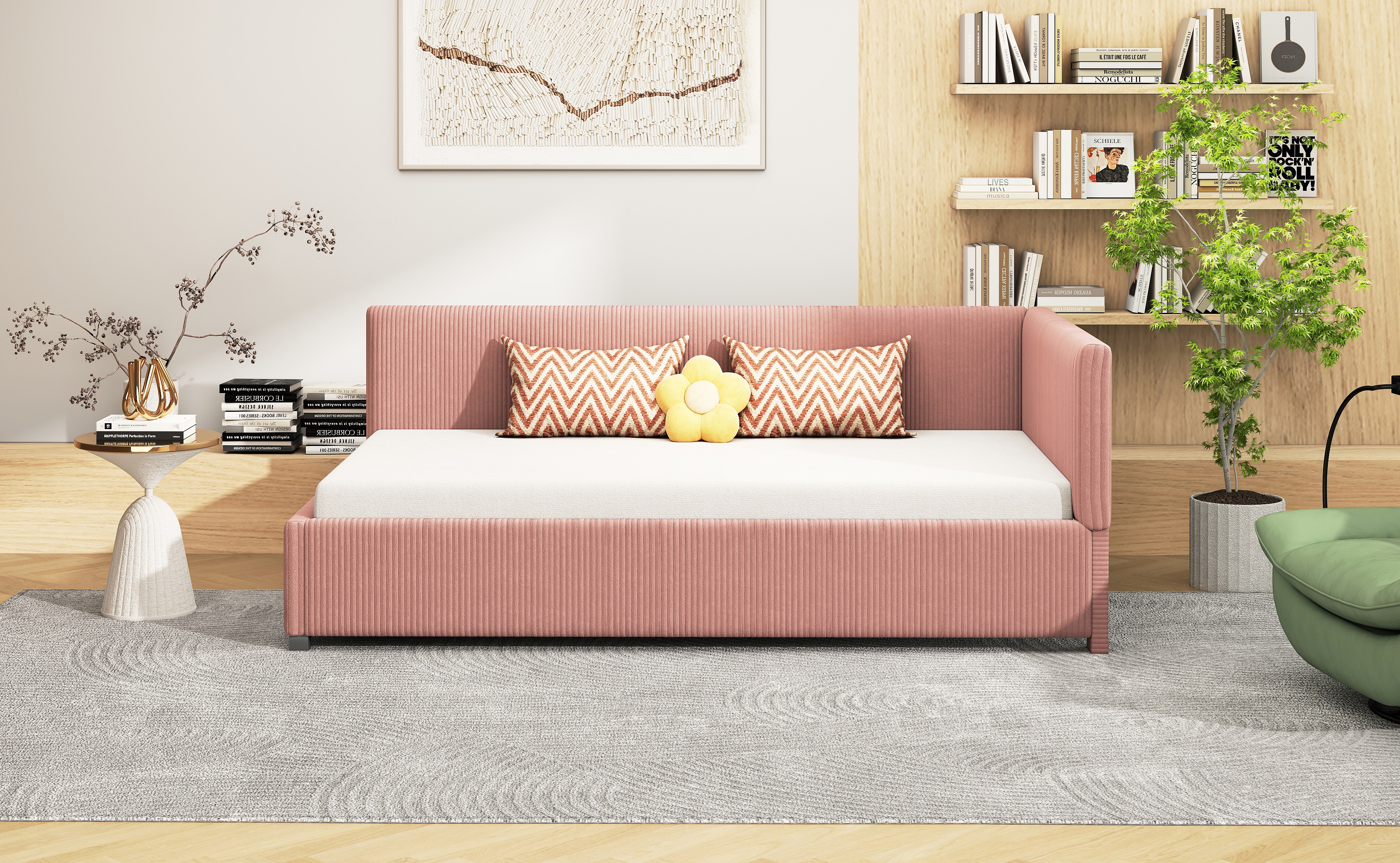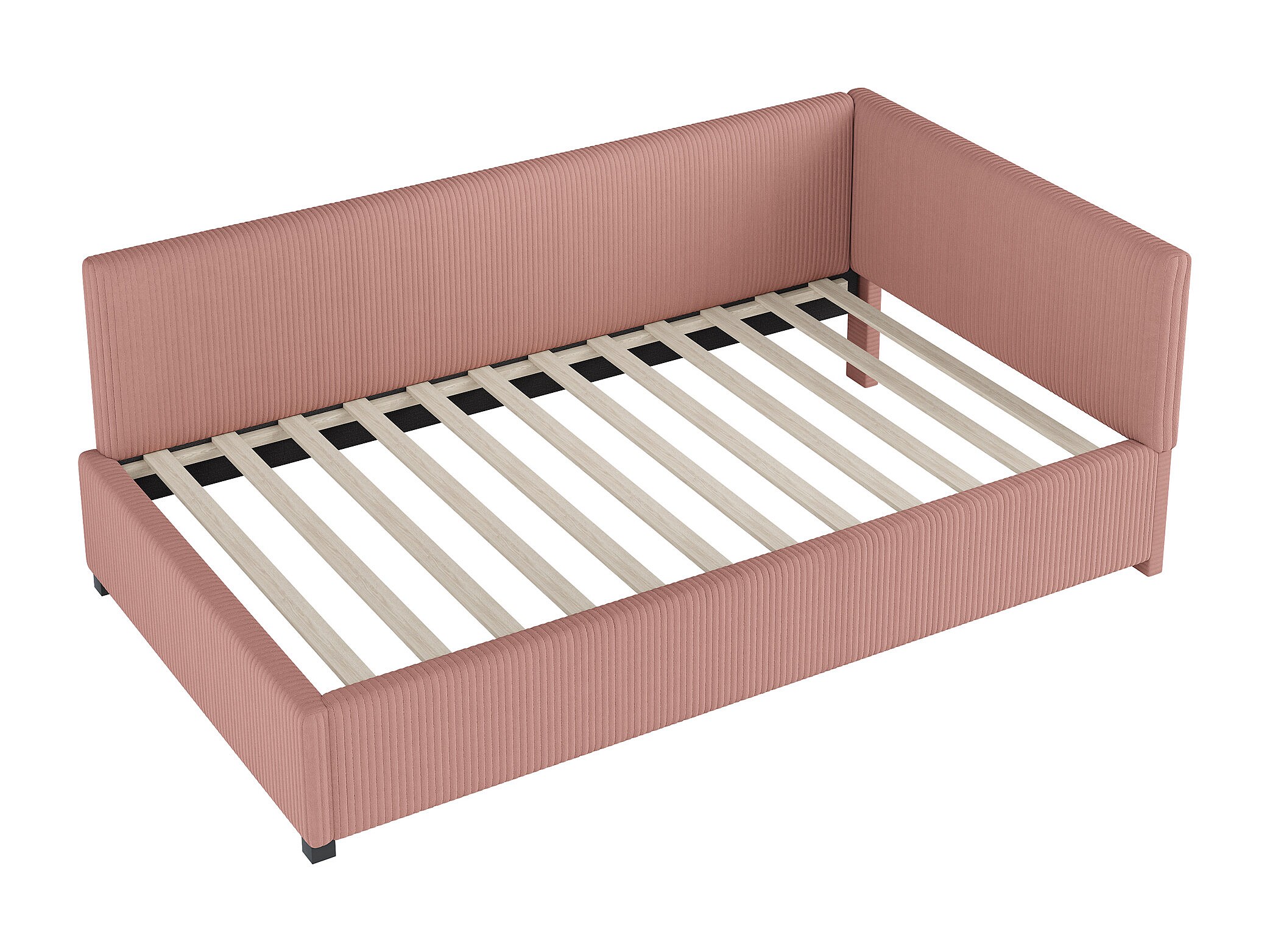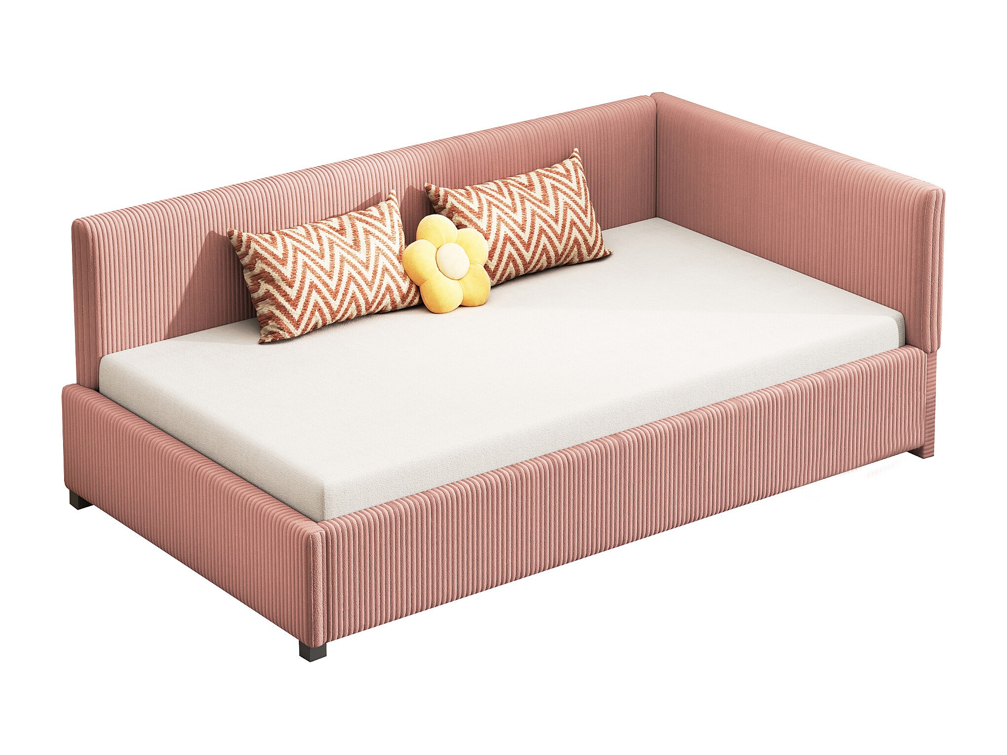 Lit multifonctionnel 90×200 cm en velours rose avec échelle et barrières de sécurité