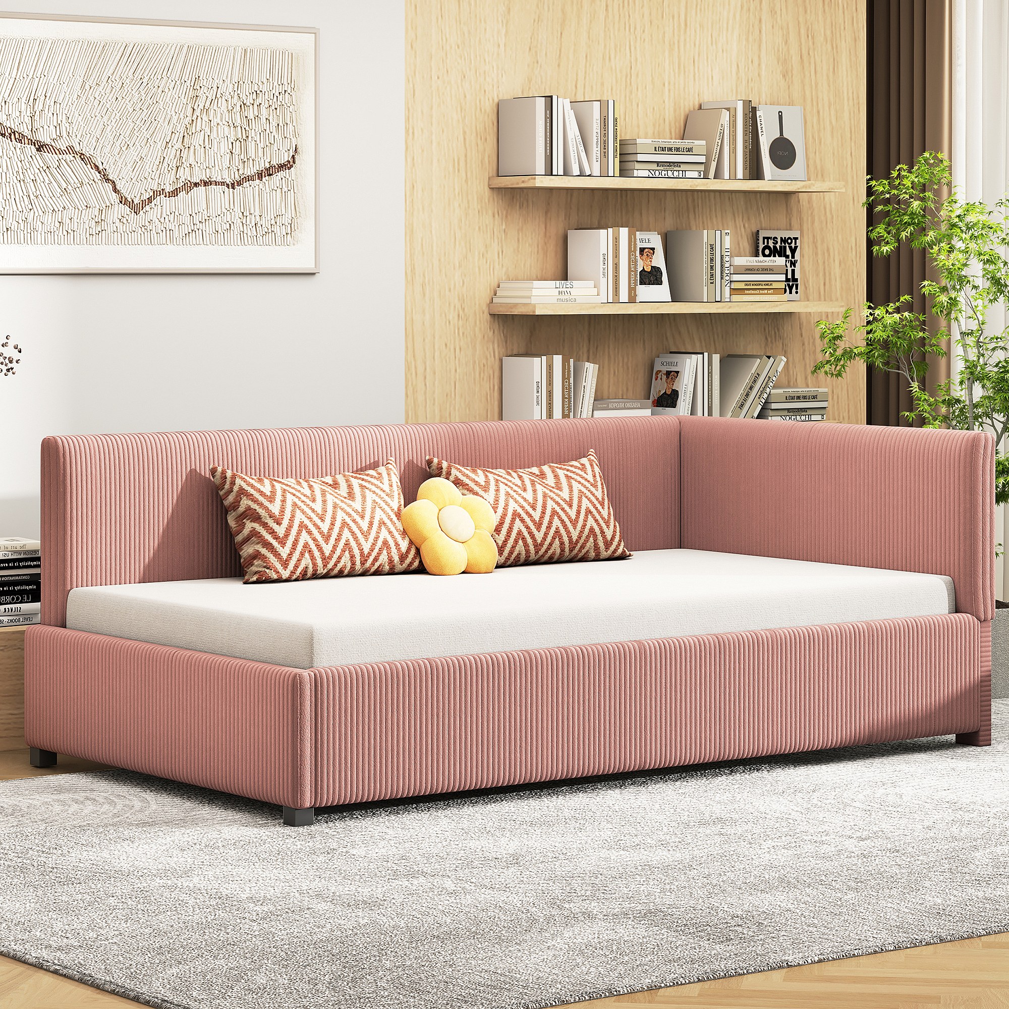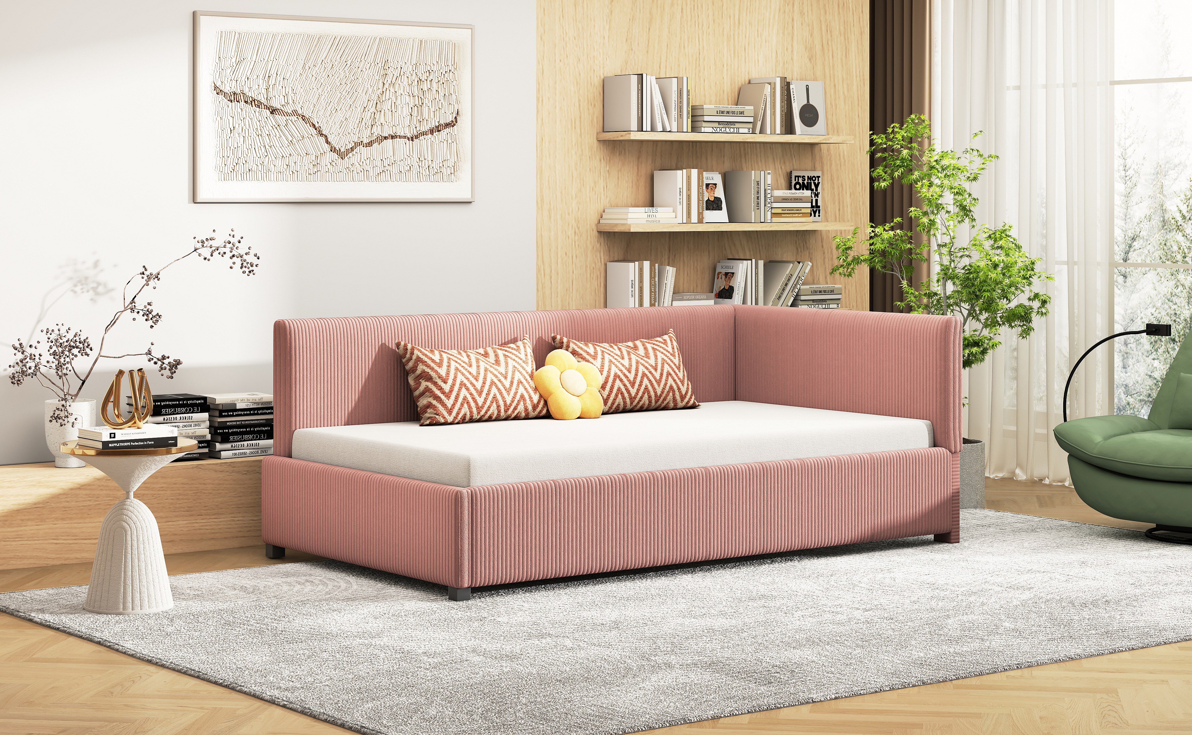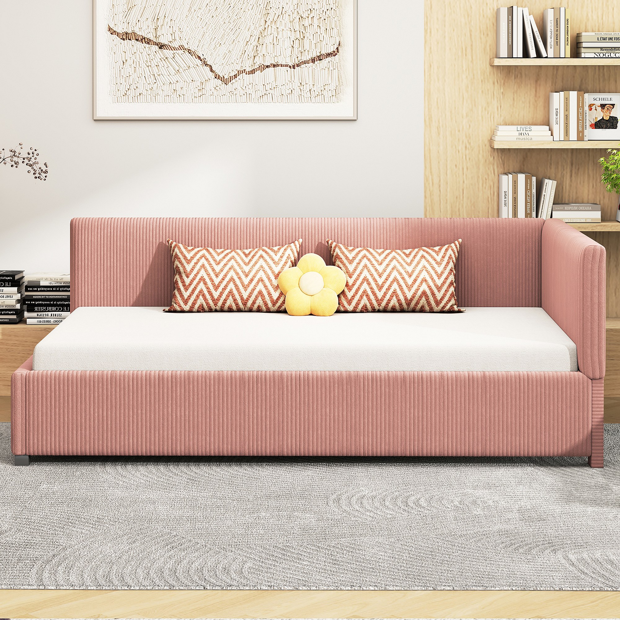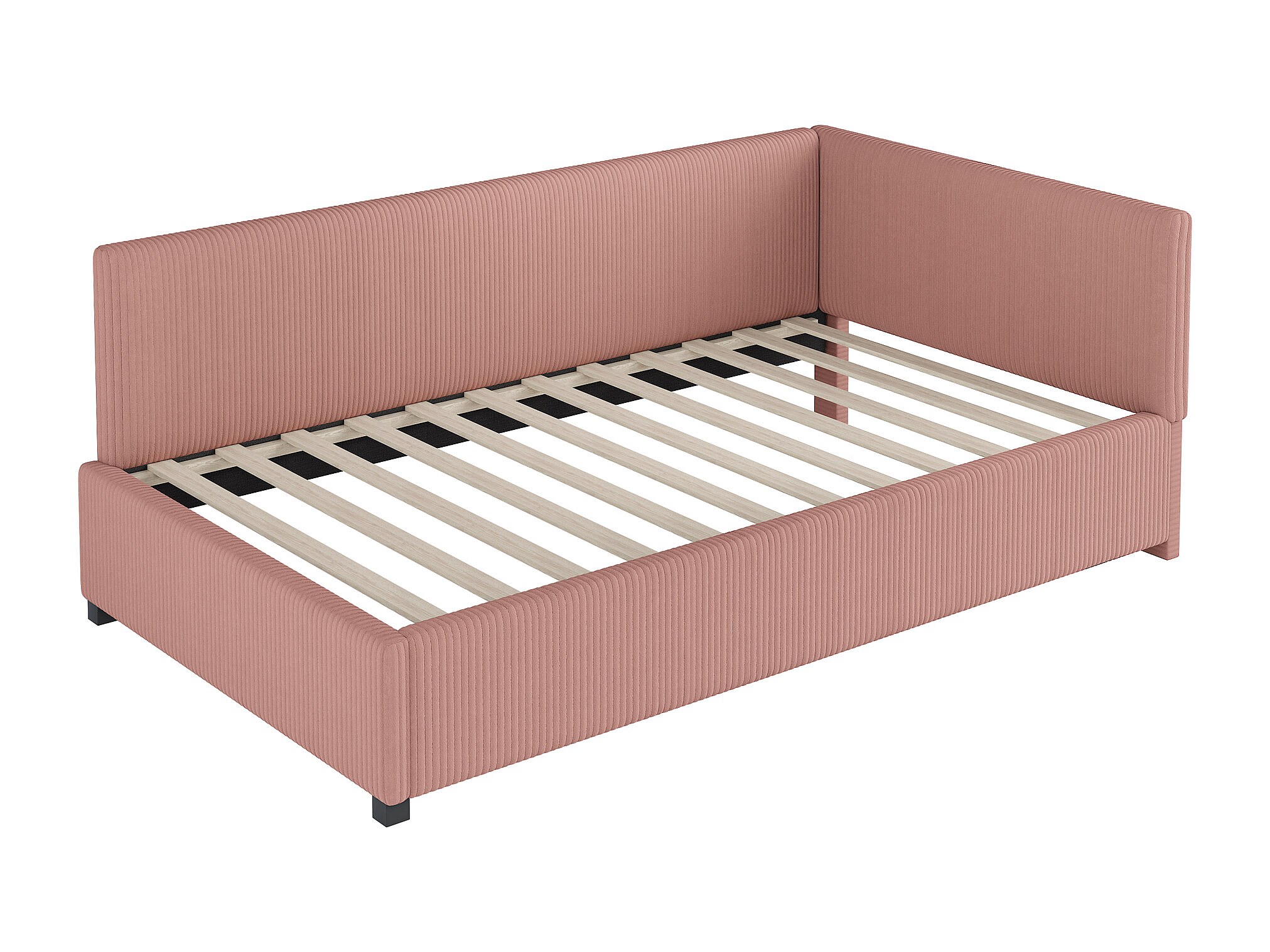 Lit multifonctionnel 90×200 cm en velours rose avec échelle et barrières de sécurité