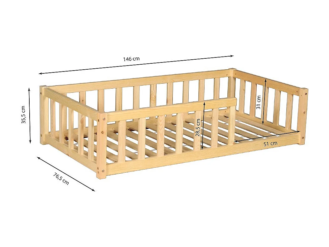 Lit NINO 70x140 + 1 sommier + barrière / Naturel
