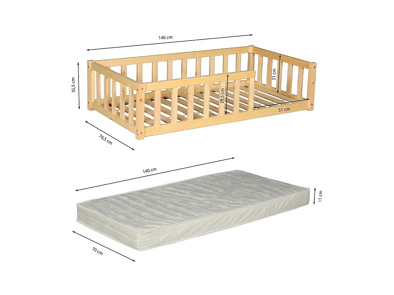 Lit NINO 70x140 avec sommier et Matelas / Naturel
