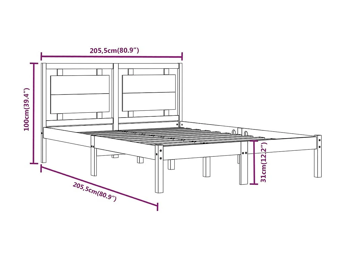 Lit Noir Bois massif 200x200 4