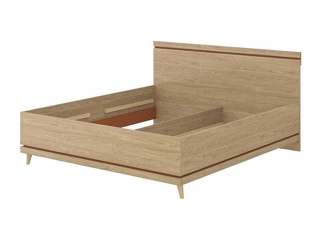 Lit NOKI – 180x200 cm chêne clair et moka – Style scandinave sans sommier