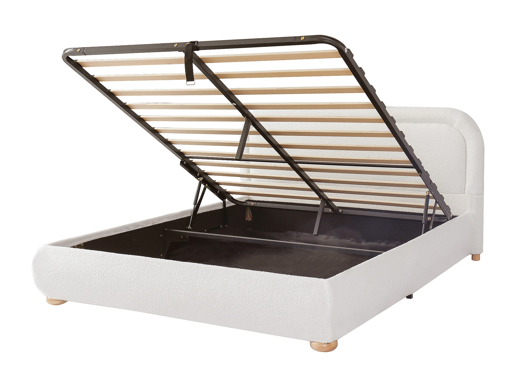 Lit offre double - 160 x 200 cm - avec tête de lit rembourrée + rangement hydrauliquement - boucle - blanc