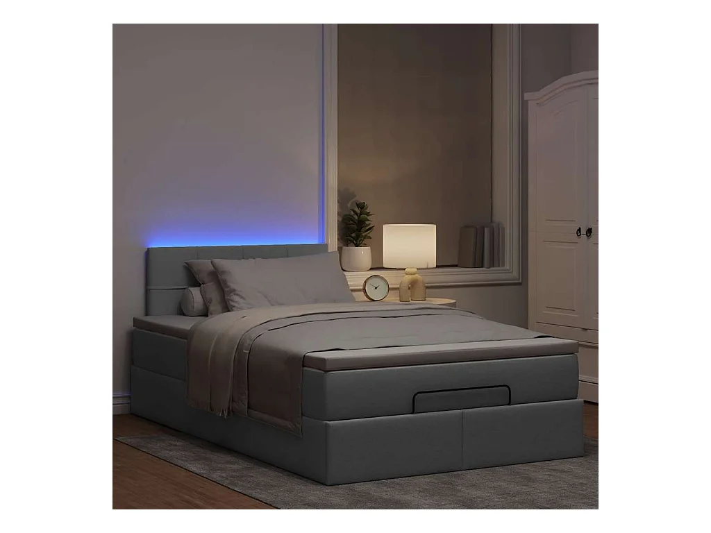 Lit ottoman avec matelas gris clair 120x190 cm tissu