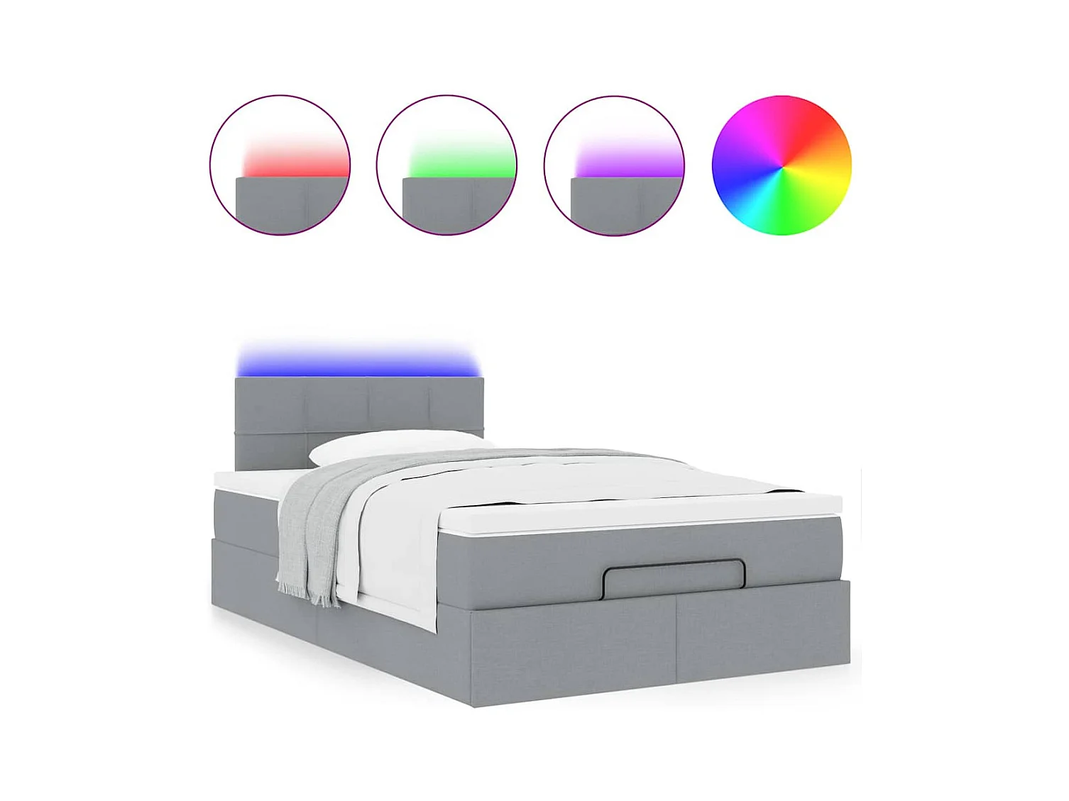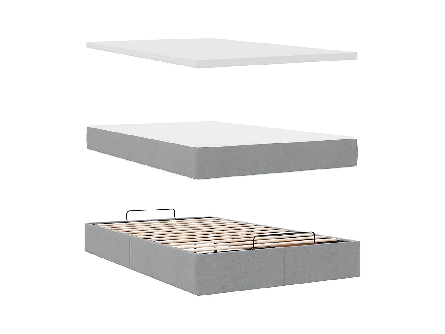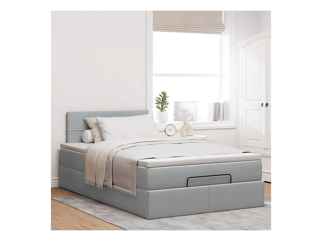 Lit ottoman avec matelas gris clair 120x200 cm tissu