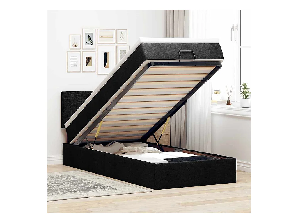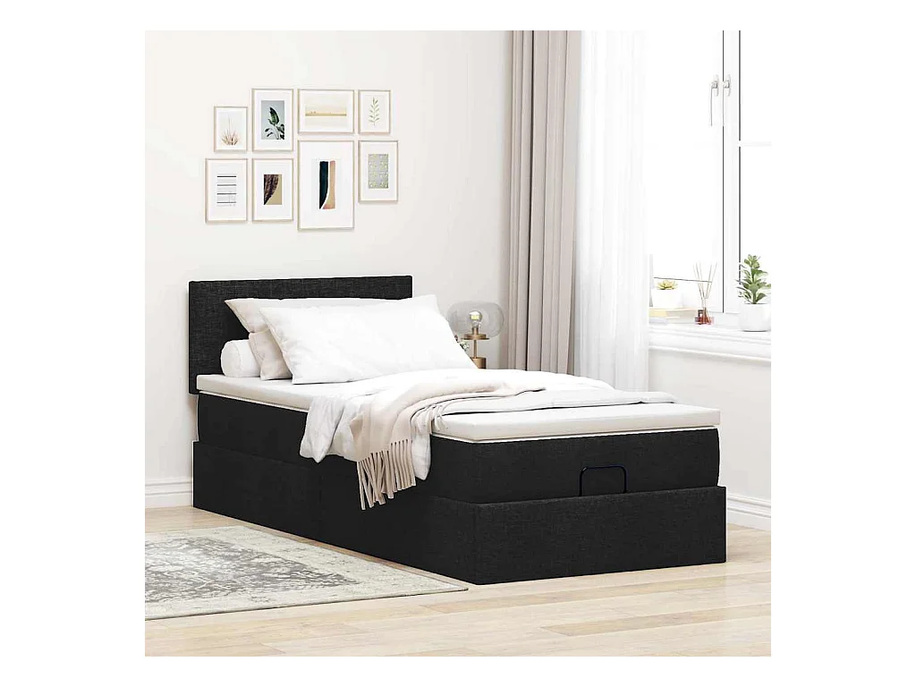 Lit ottoman avec matelas noir 90x200 cm tissu