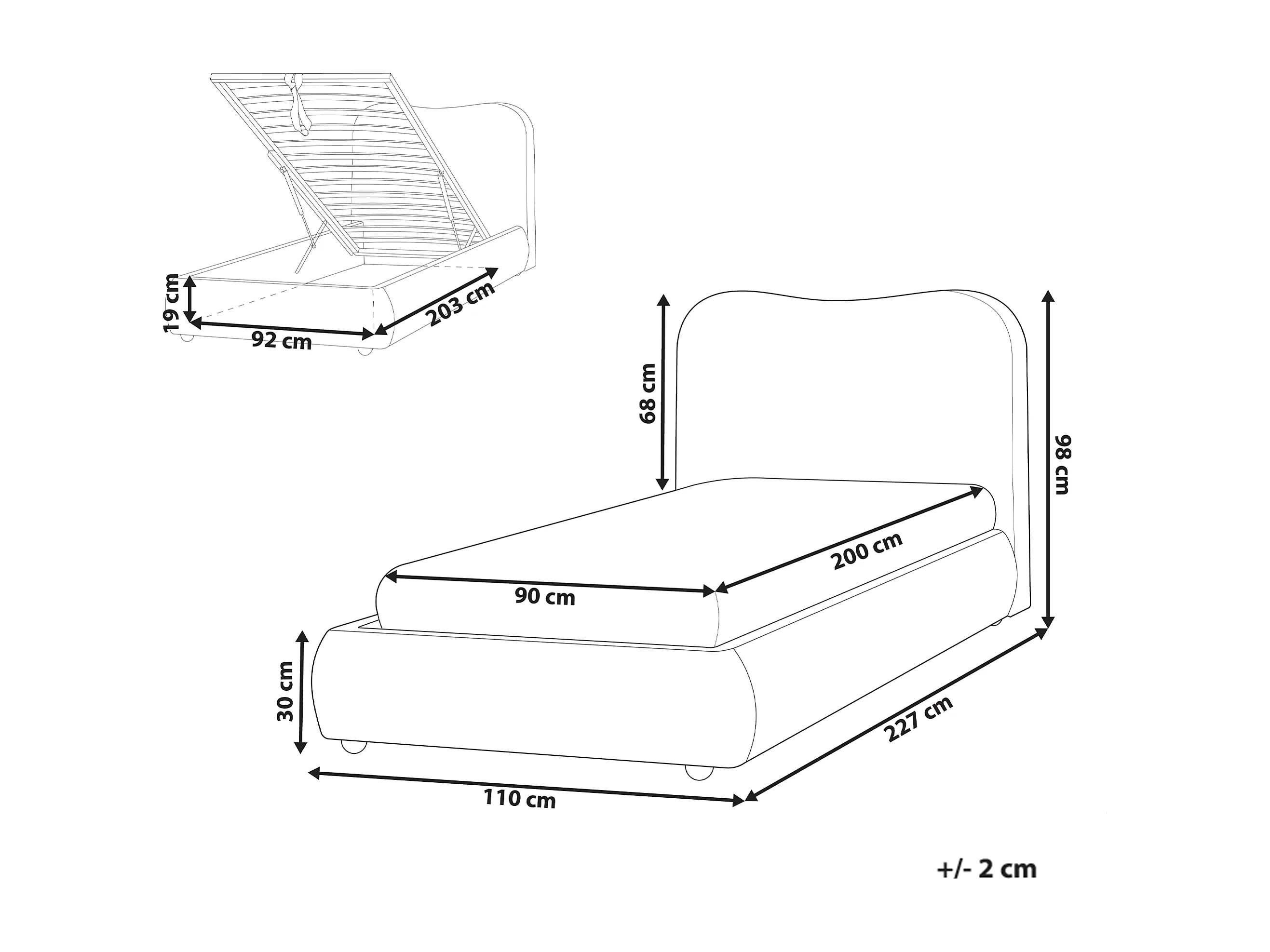 Lit ottoman Bouclé BLAGNAC 90 x 200 cm Rose