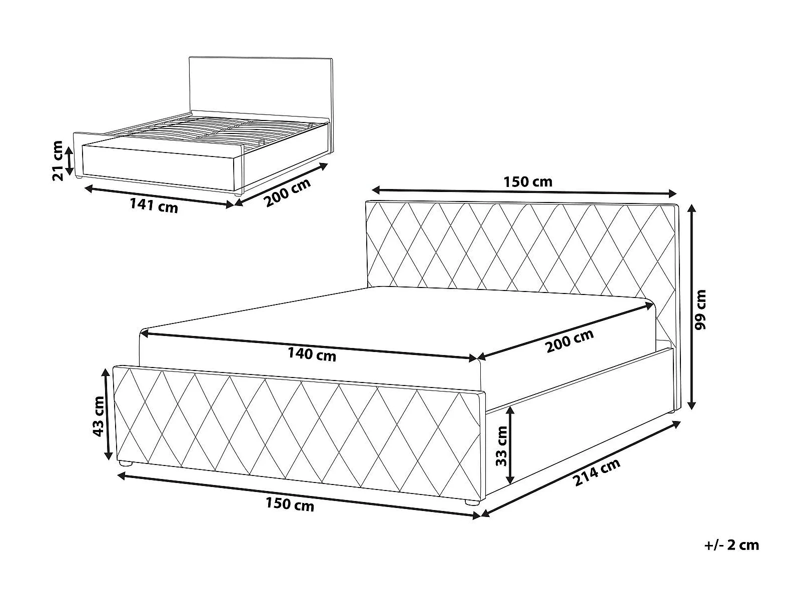 Lit ottoman Bouclé ROCHEFORT 140 x 200 cm Blanc cassé
