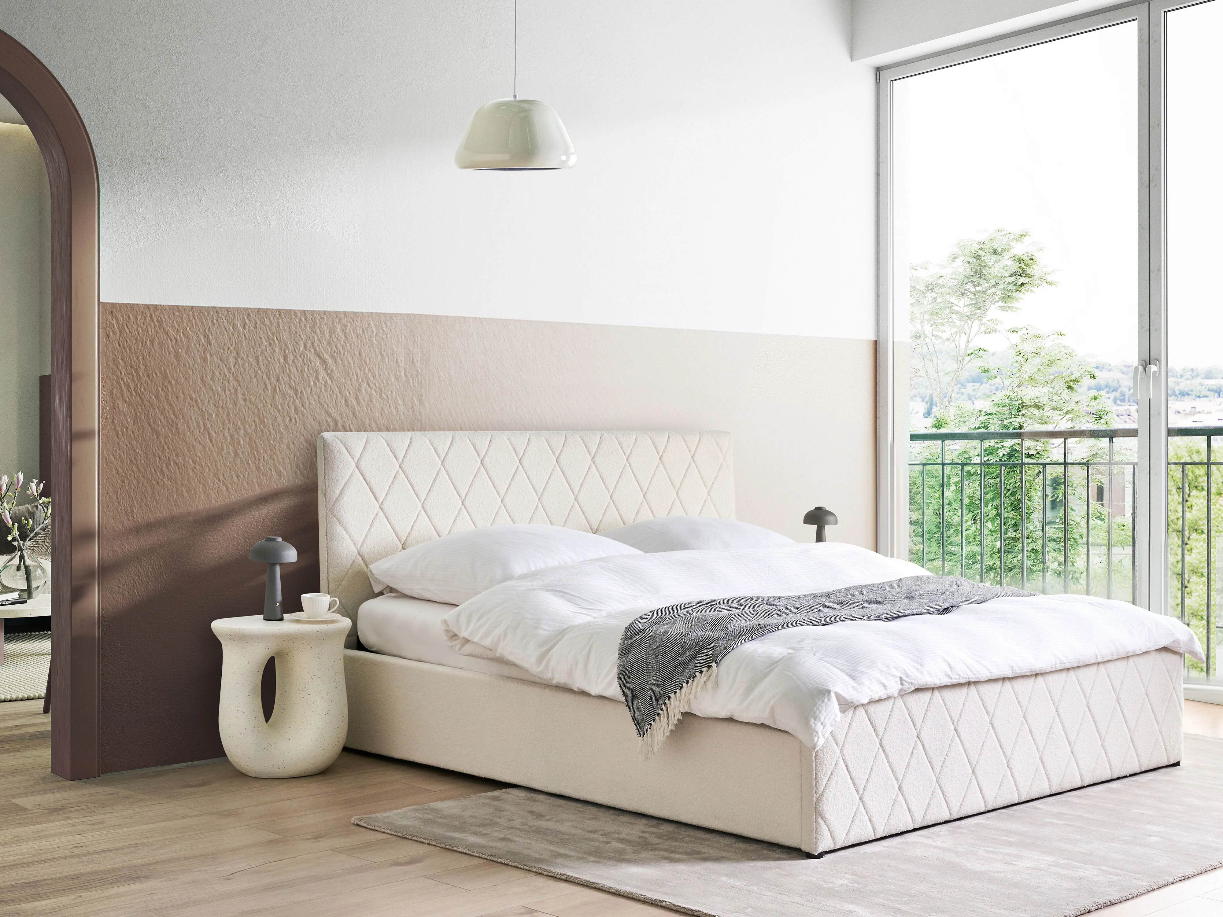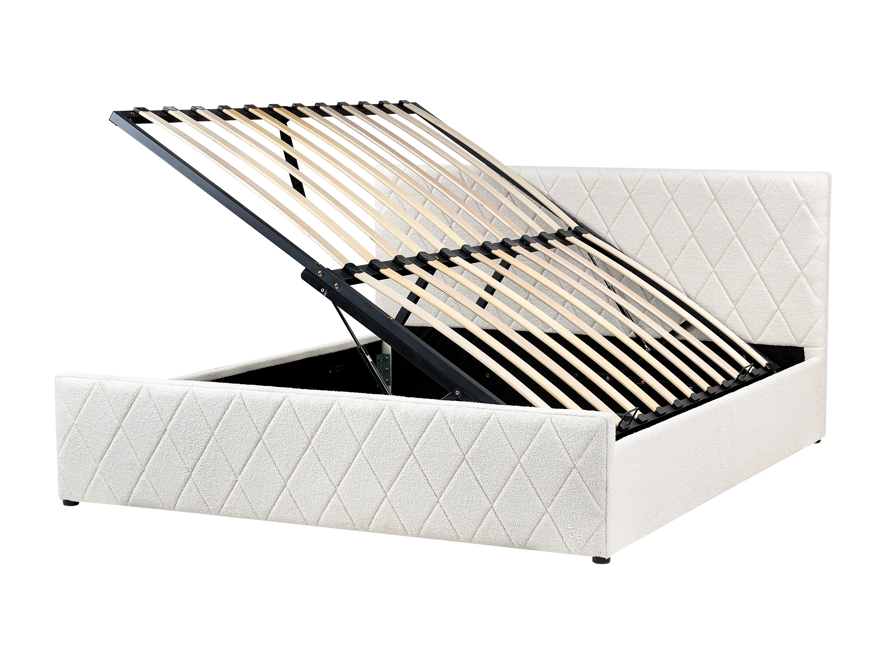 Lit ottoman Bouclé ROCHEFORT 180 x 200 cm Blanc cassé