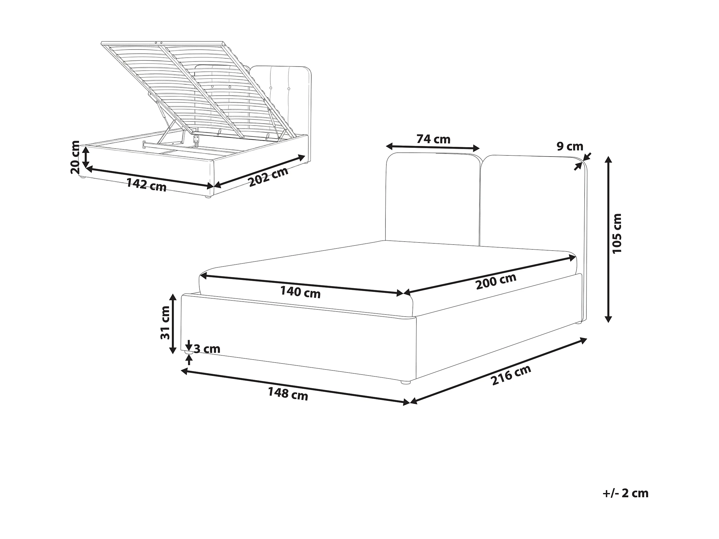 Lit ottoman Tissu ARBOIS 140 x 200 cm Beige