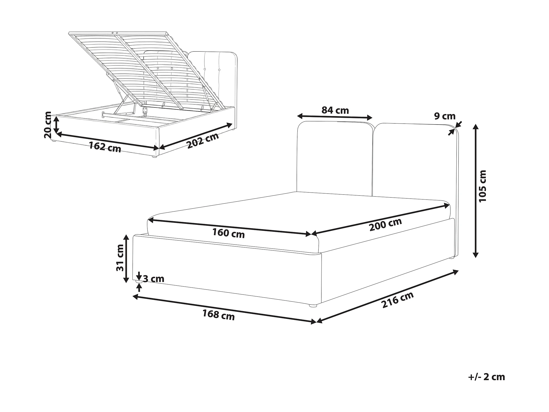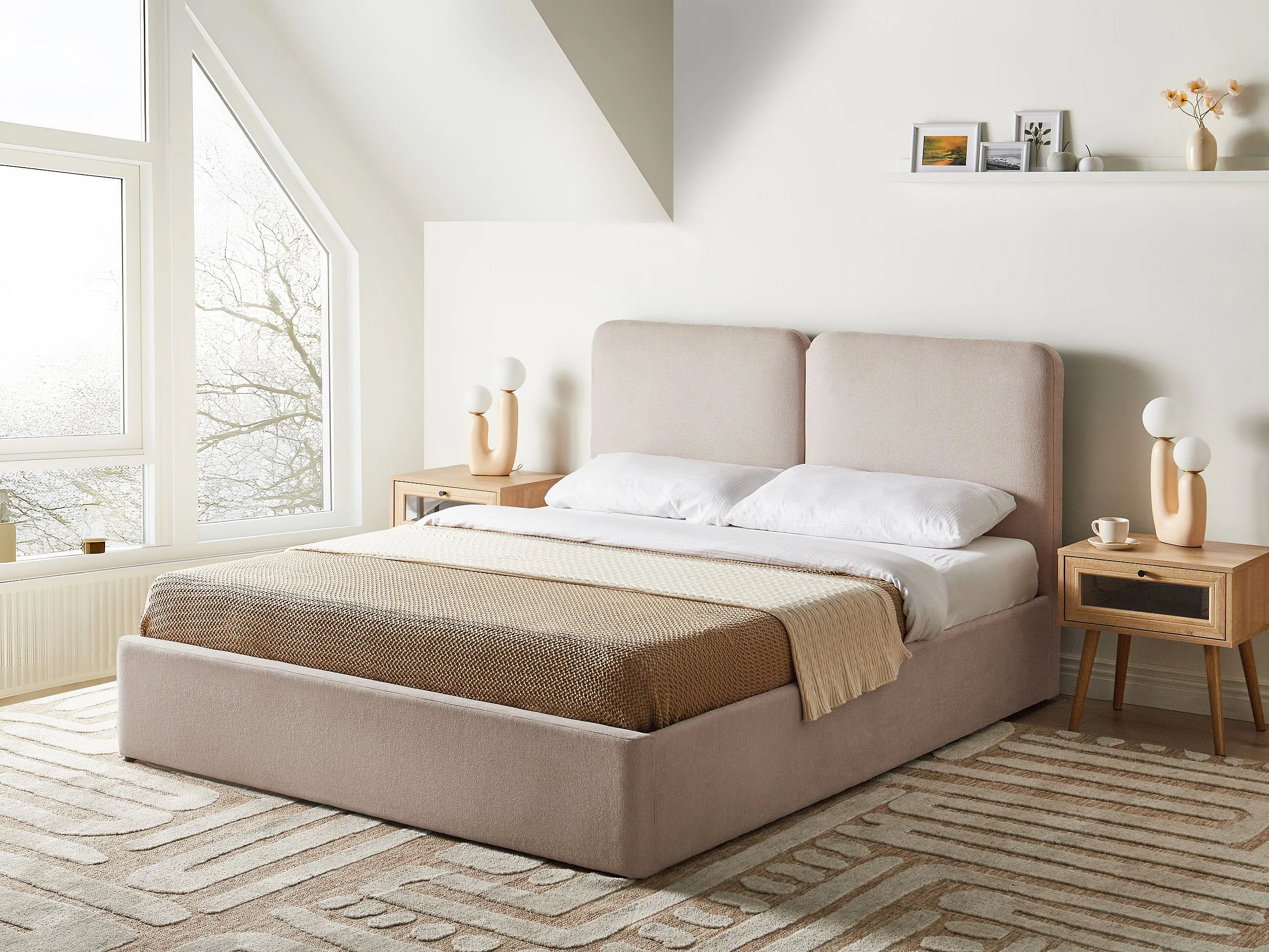 Lit ottoman Tissu ARBOIS 160 x 200 cm Beige