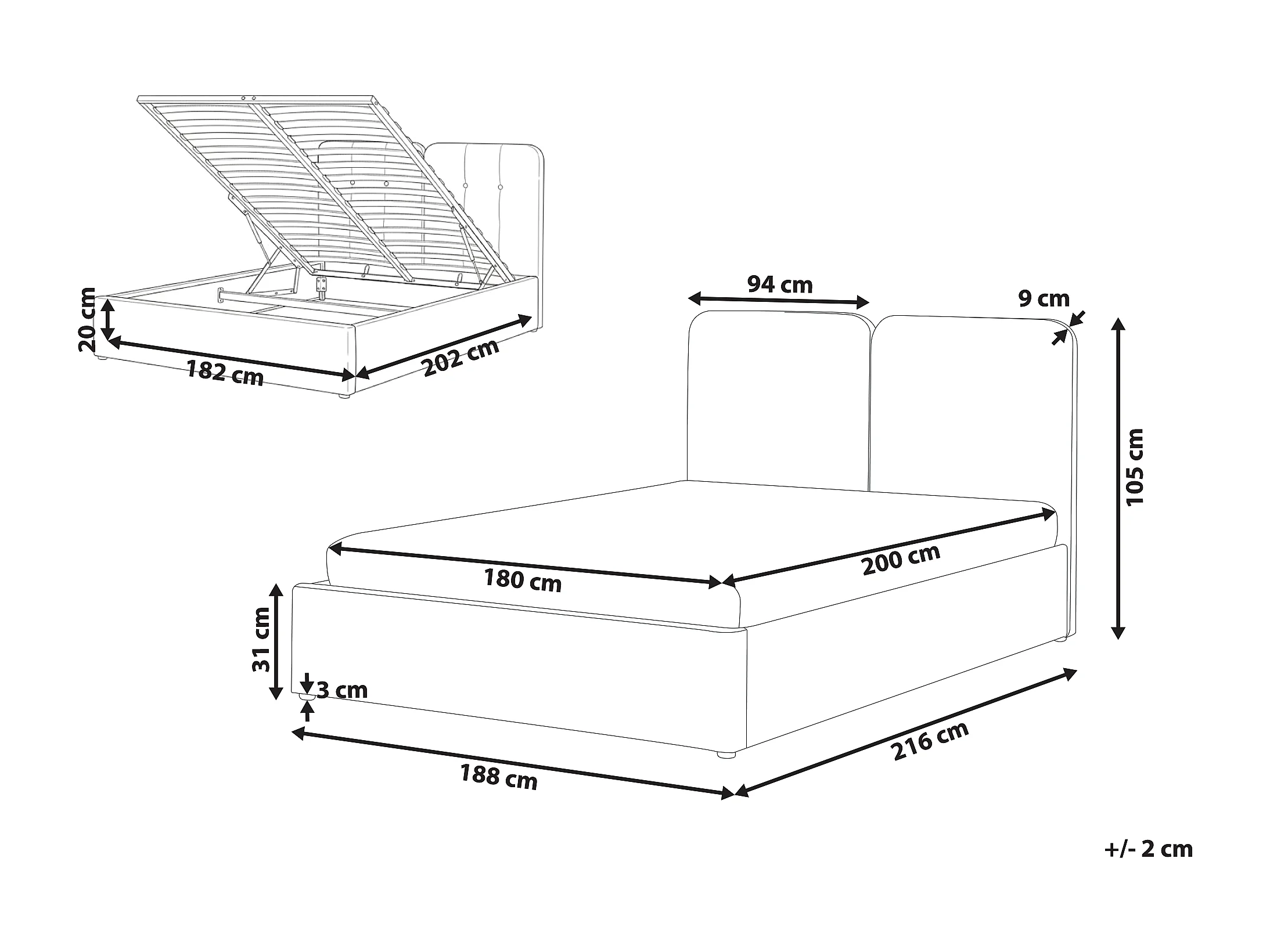 Lit ottoman Tissu ARBOIS 180 x 200 cm Beige