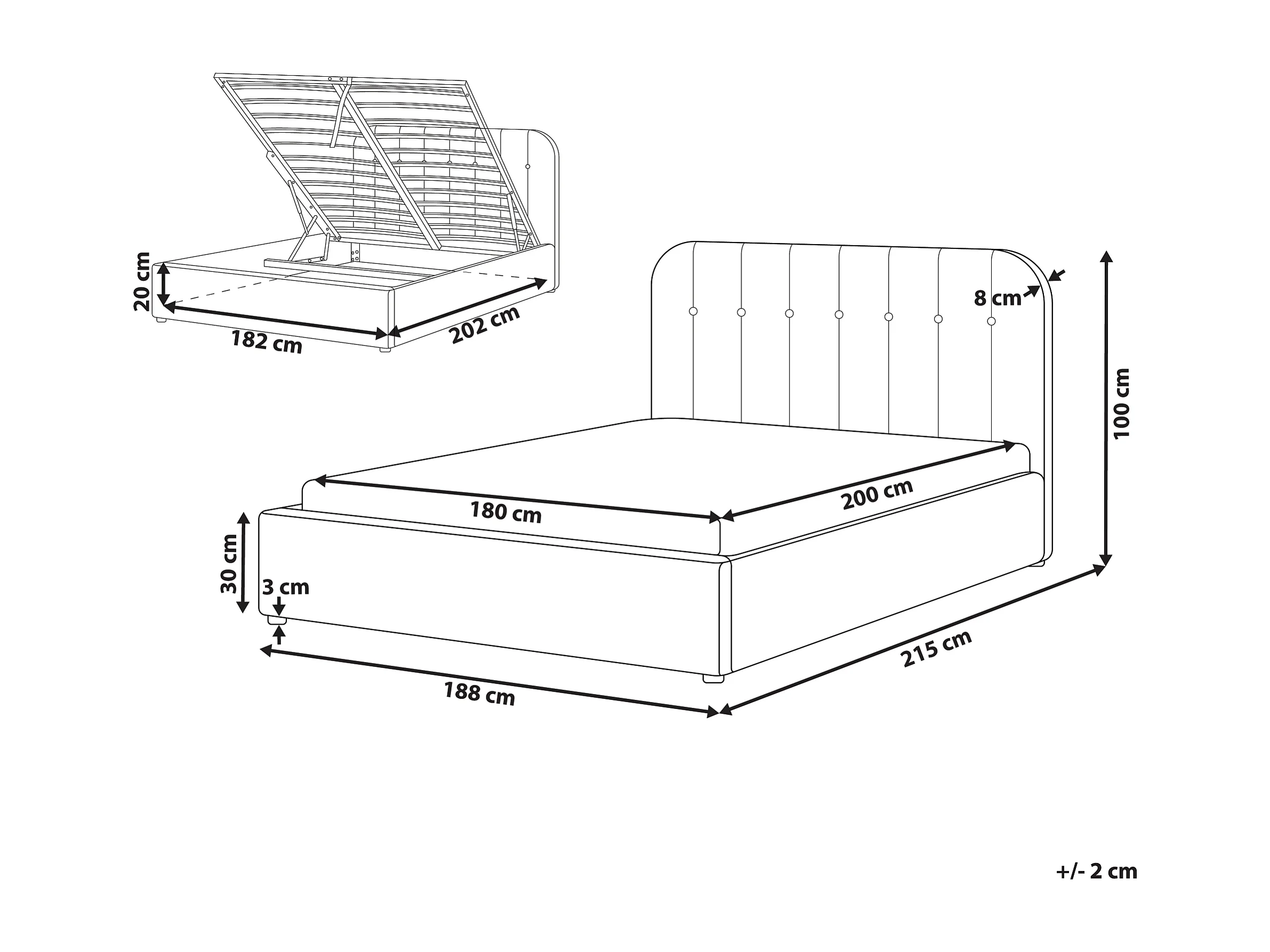 Lit ottoman Tissu CHALLANS 180 x 200 cm Blanc cassé