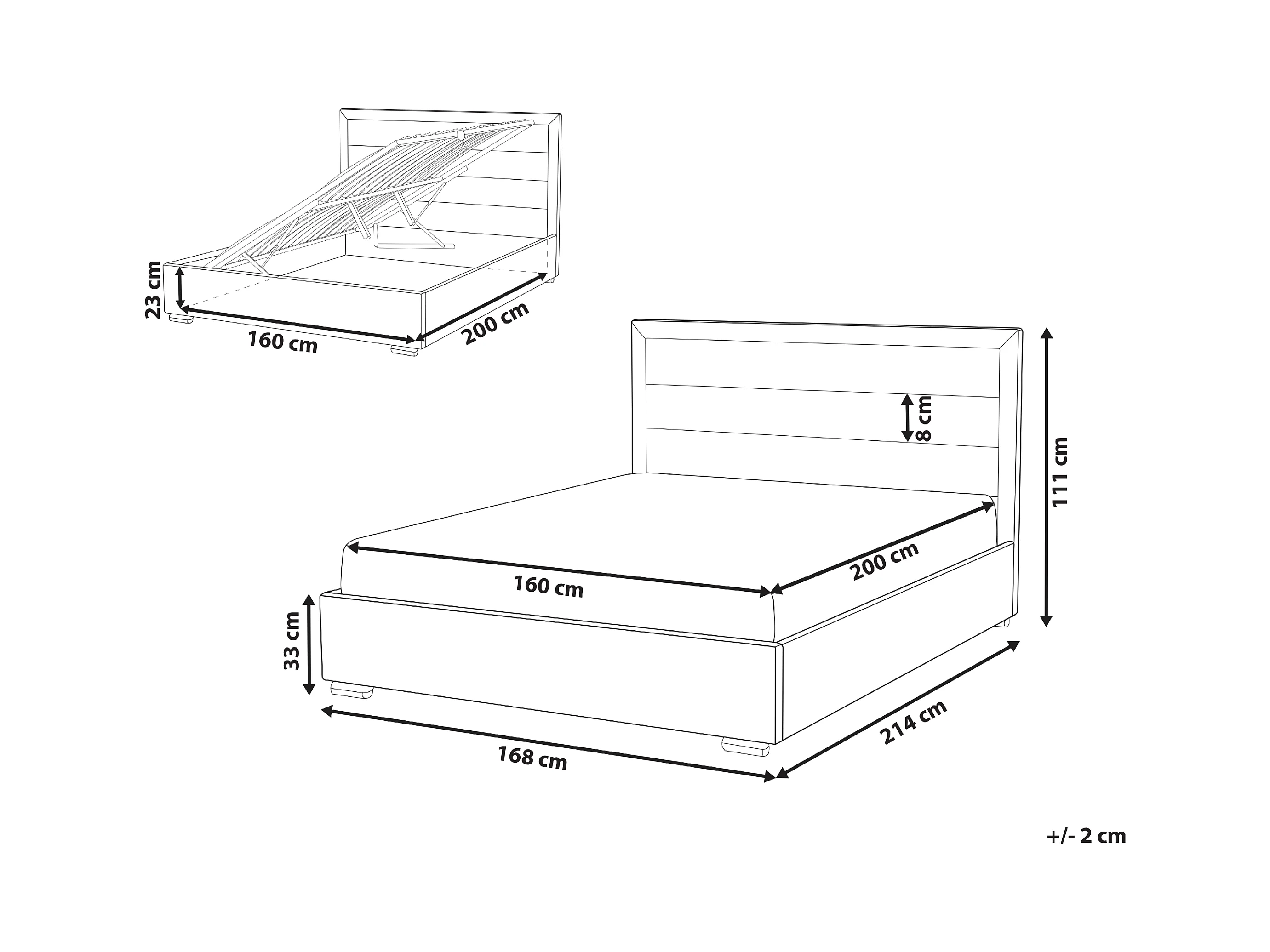 Lit ottoman Tissu ROUEN 160 x 200 cm Beige clair