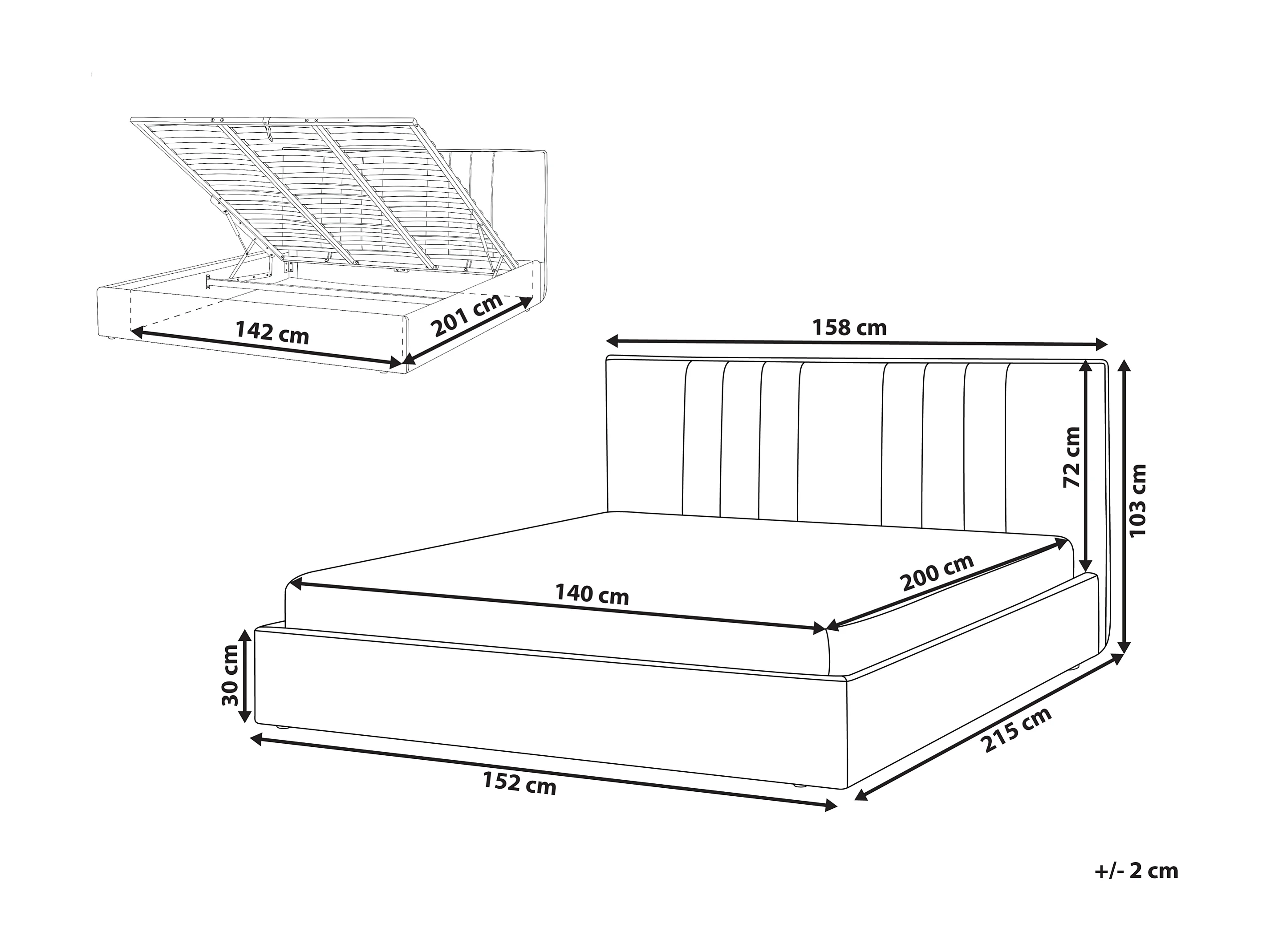 Lit ottoman Tissu TARASCON 140 x 200 cm Beige clair