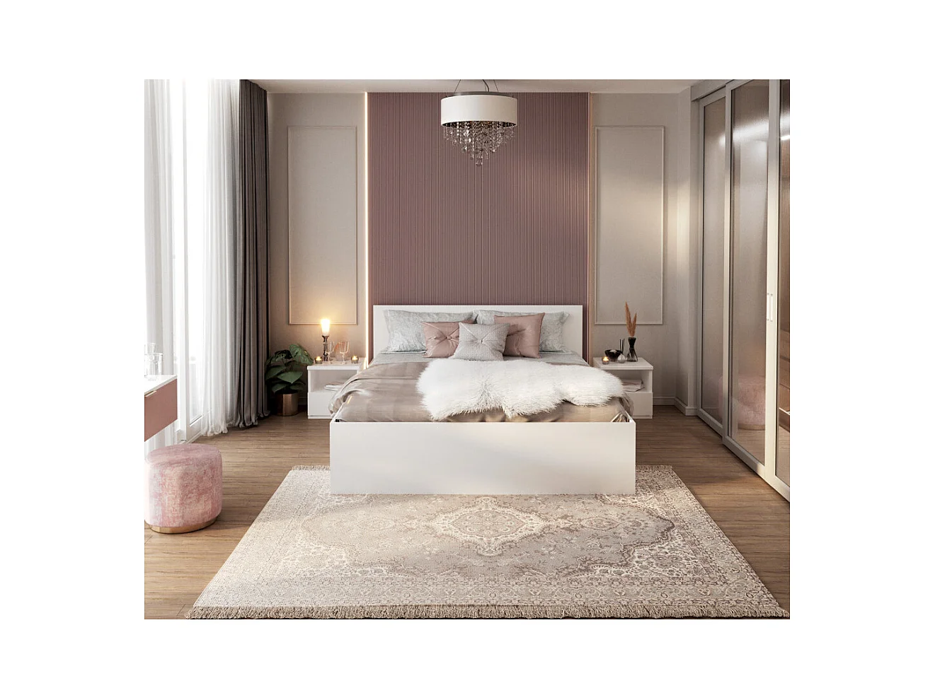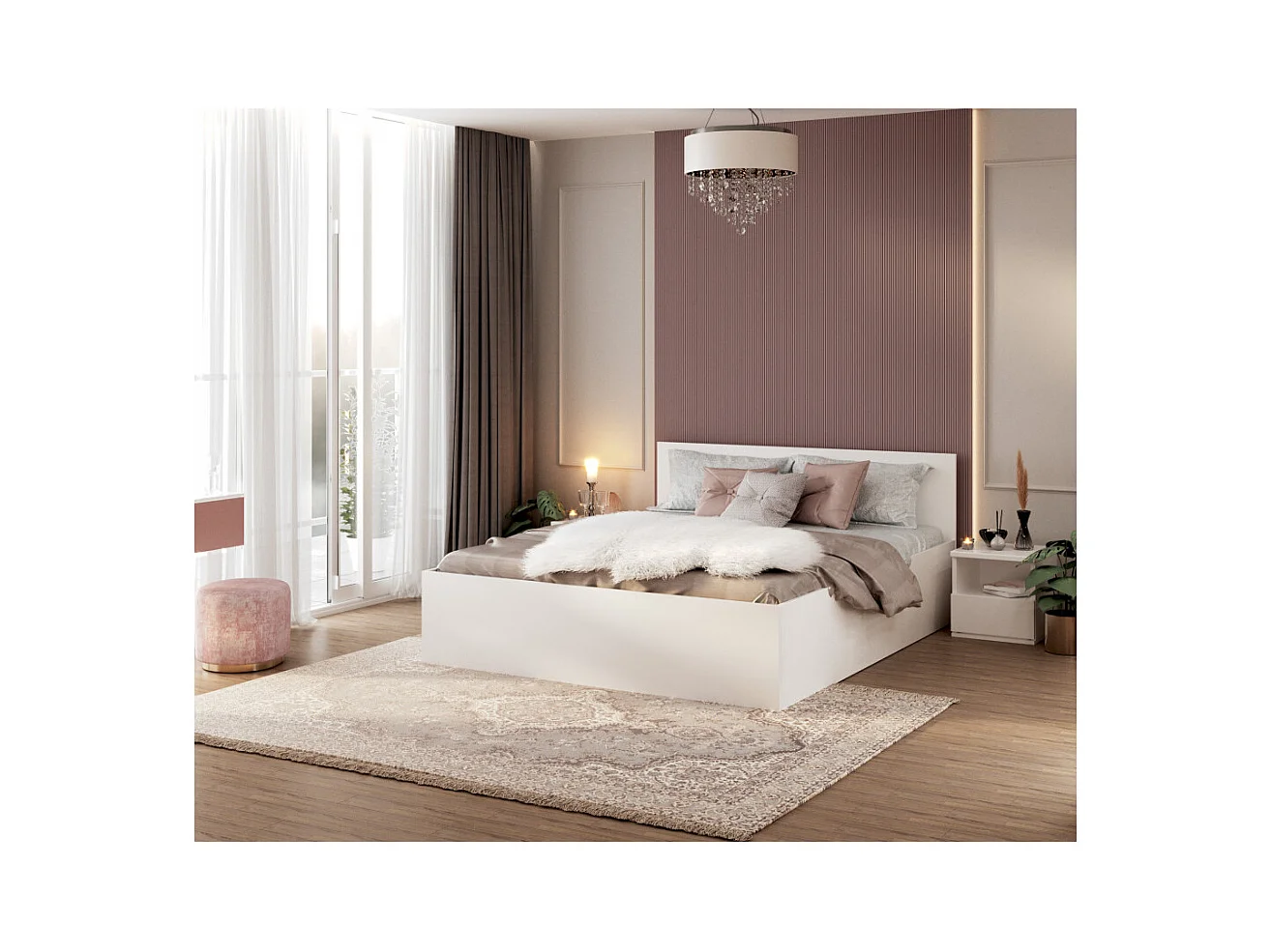 Lit Panama 140x200 + coffre - Sommier inclus Blanc