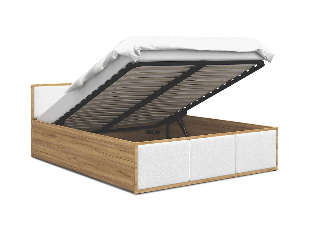 Lit Panama T 120x200 + coffre - Sommier inclus Chêne - Blanc