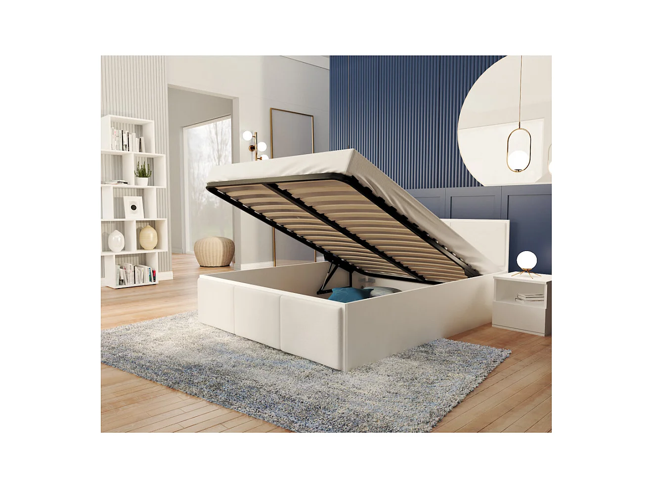 Lit coffre Panama T 140x190 - Sommier inclus Blanc - blanc
