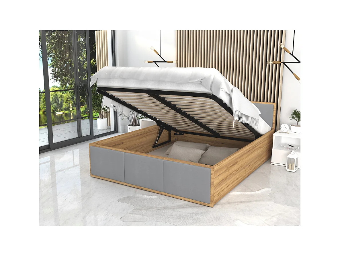 Lit coffre Panama T 140x190 - Sommier inclus Chêne - gris clair