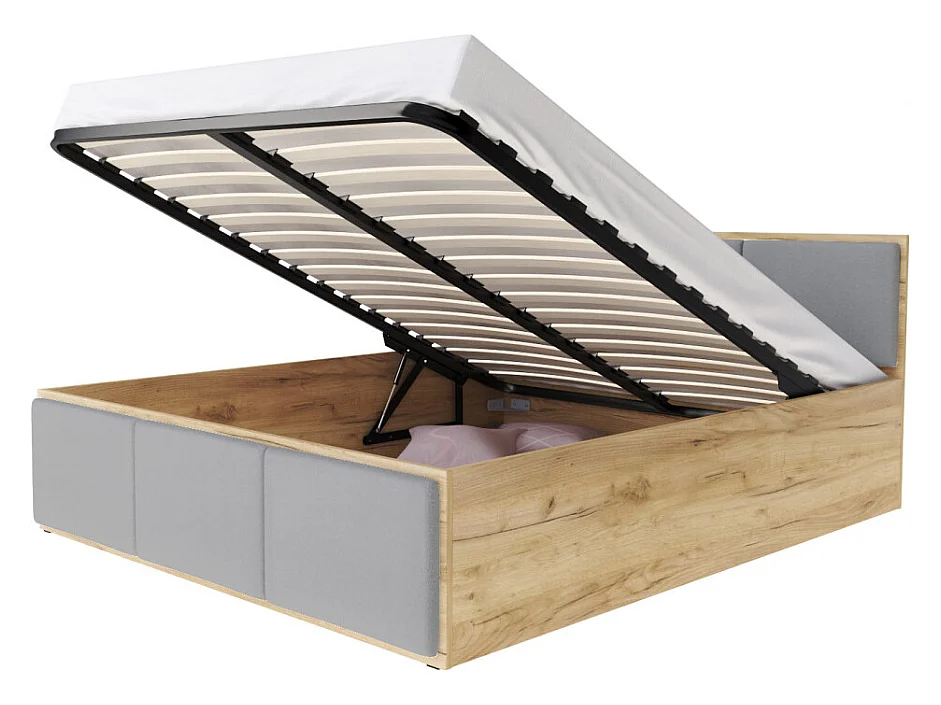 Lit coffre Panama T 160x200 - Sommier inclus Chêne - gris clair