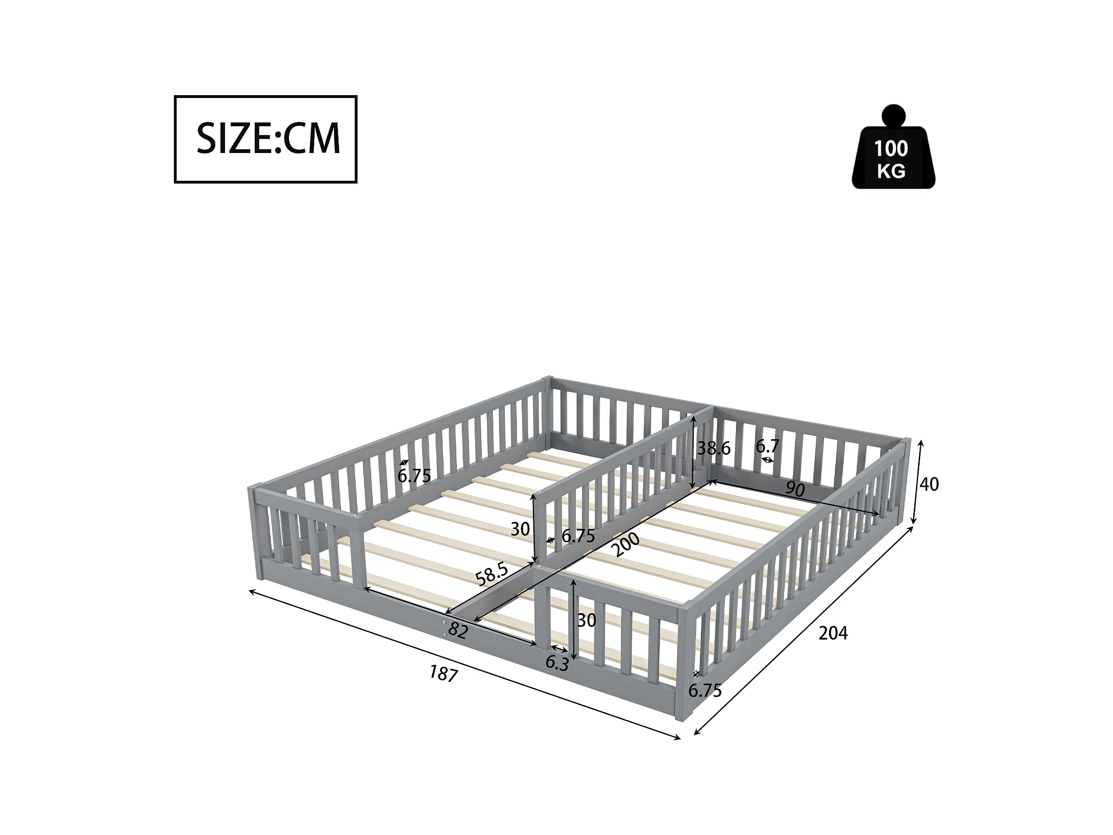 Lit panneaux 90x200 cm pour enfant avec barrières et sommier, adapté pour deux enfants, bois de pin, style minimaliste, Blanc