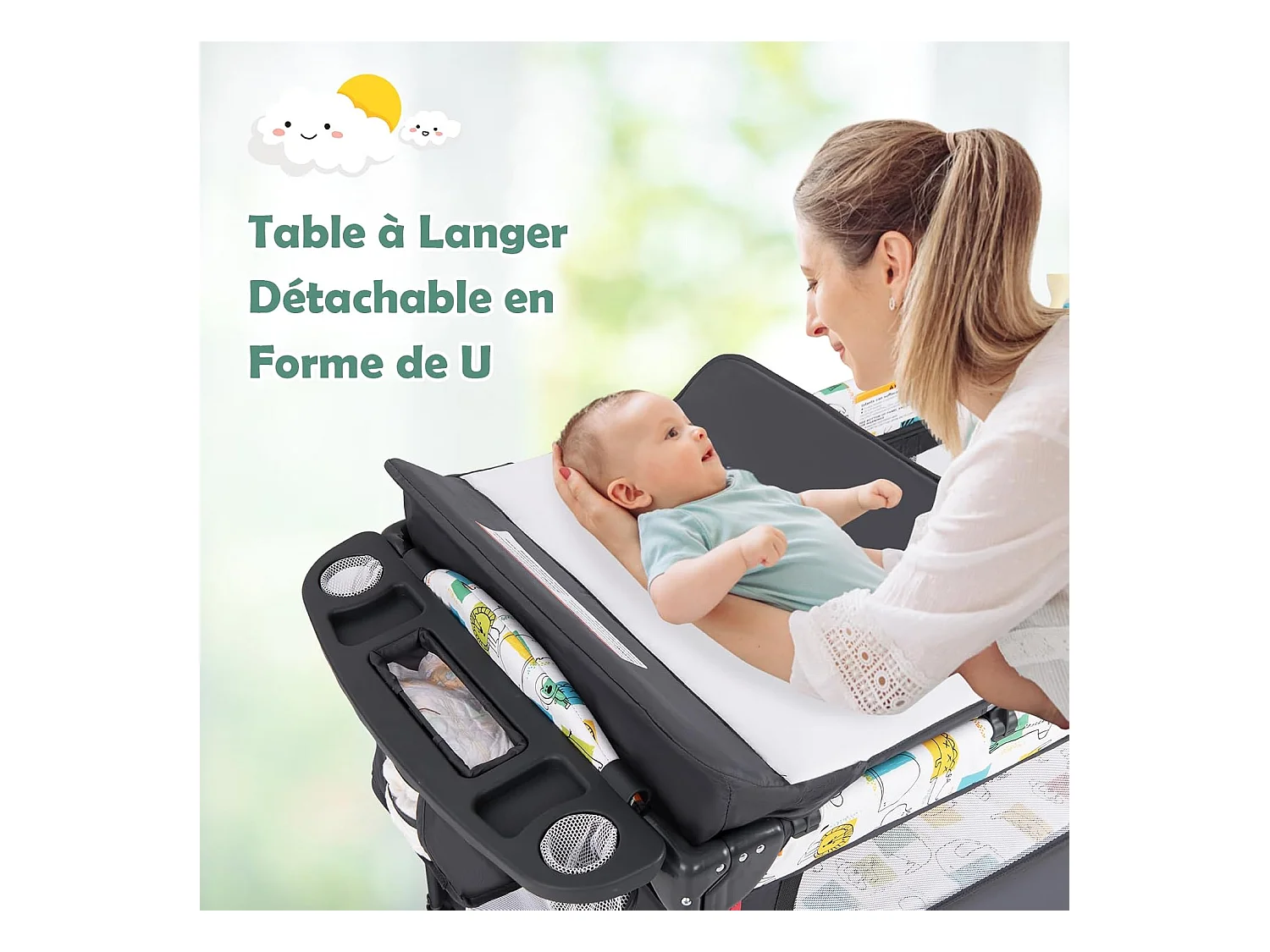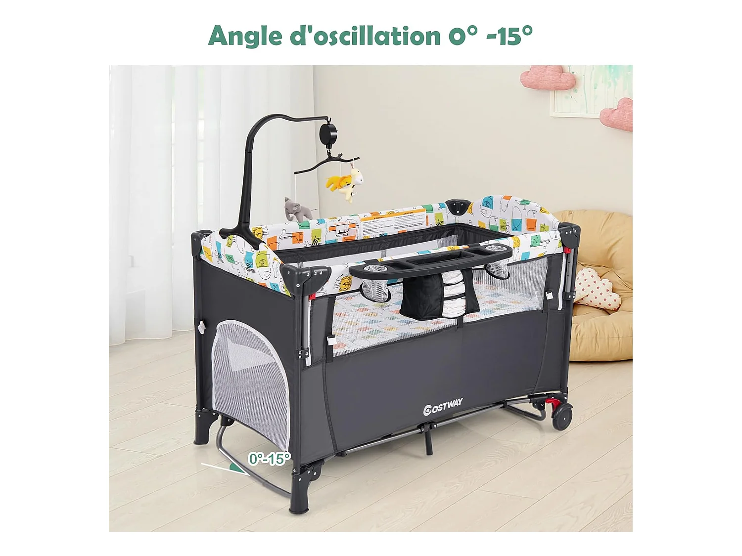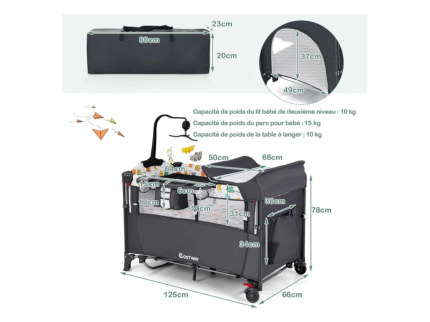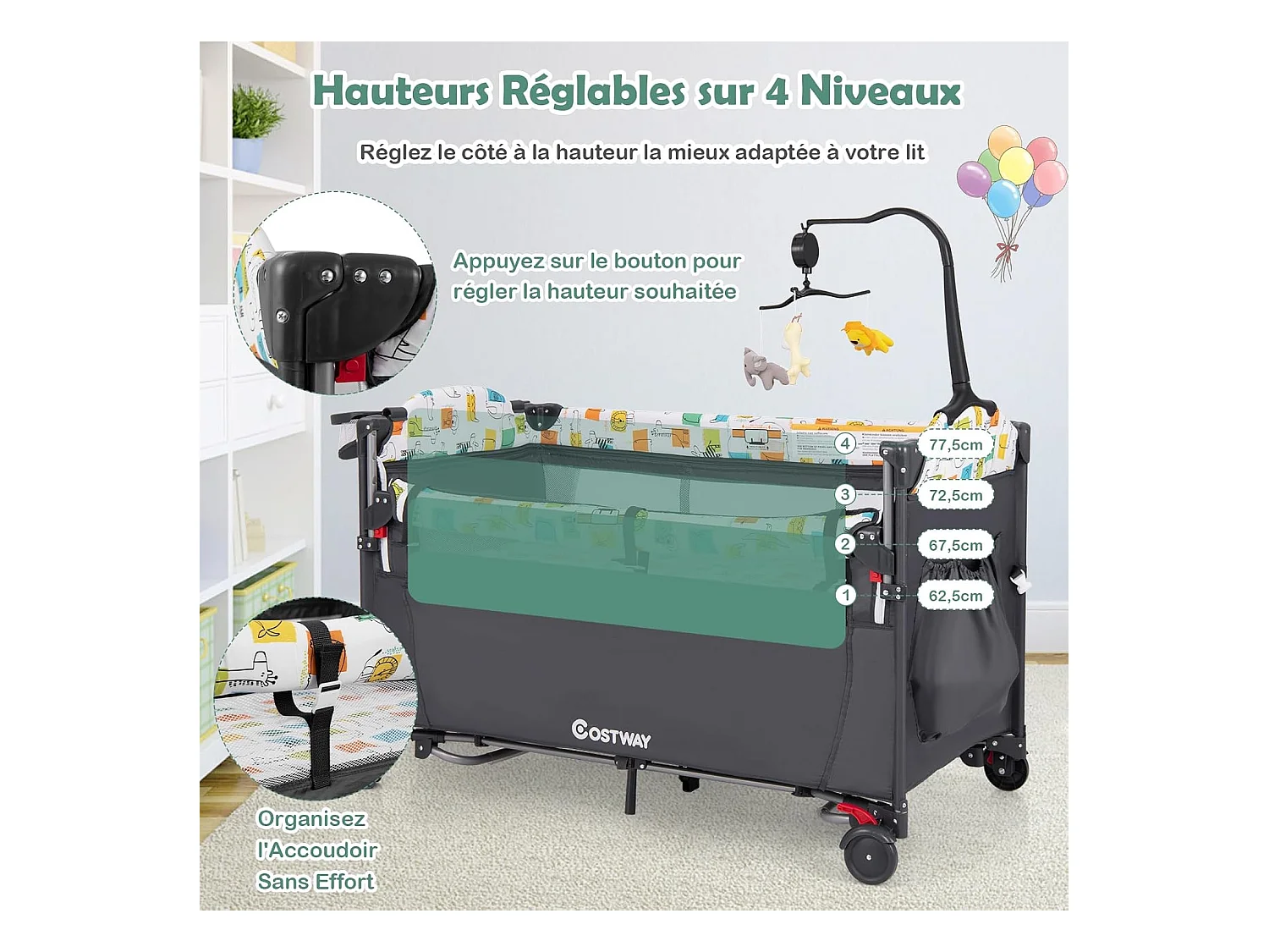 Lit parapluie bébé pliant 5 en 1 ,4 hauteurs d'accoudoir réglables