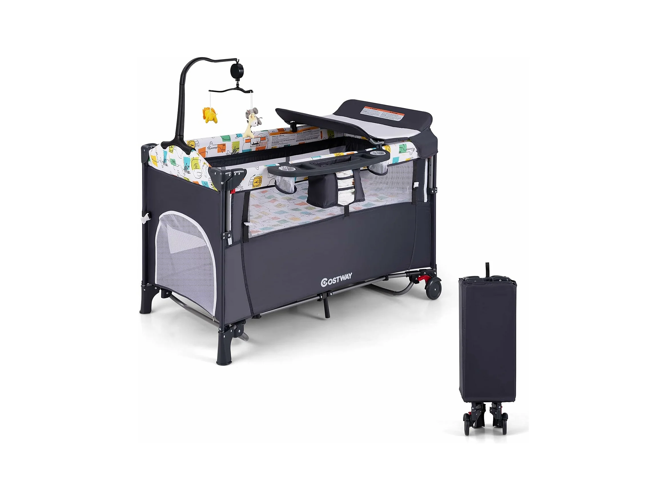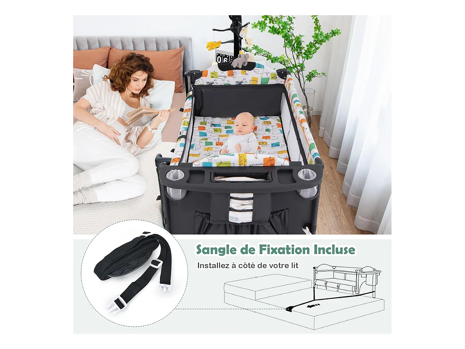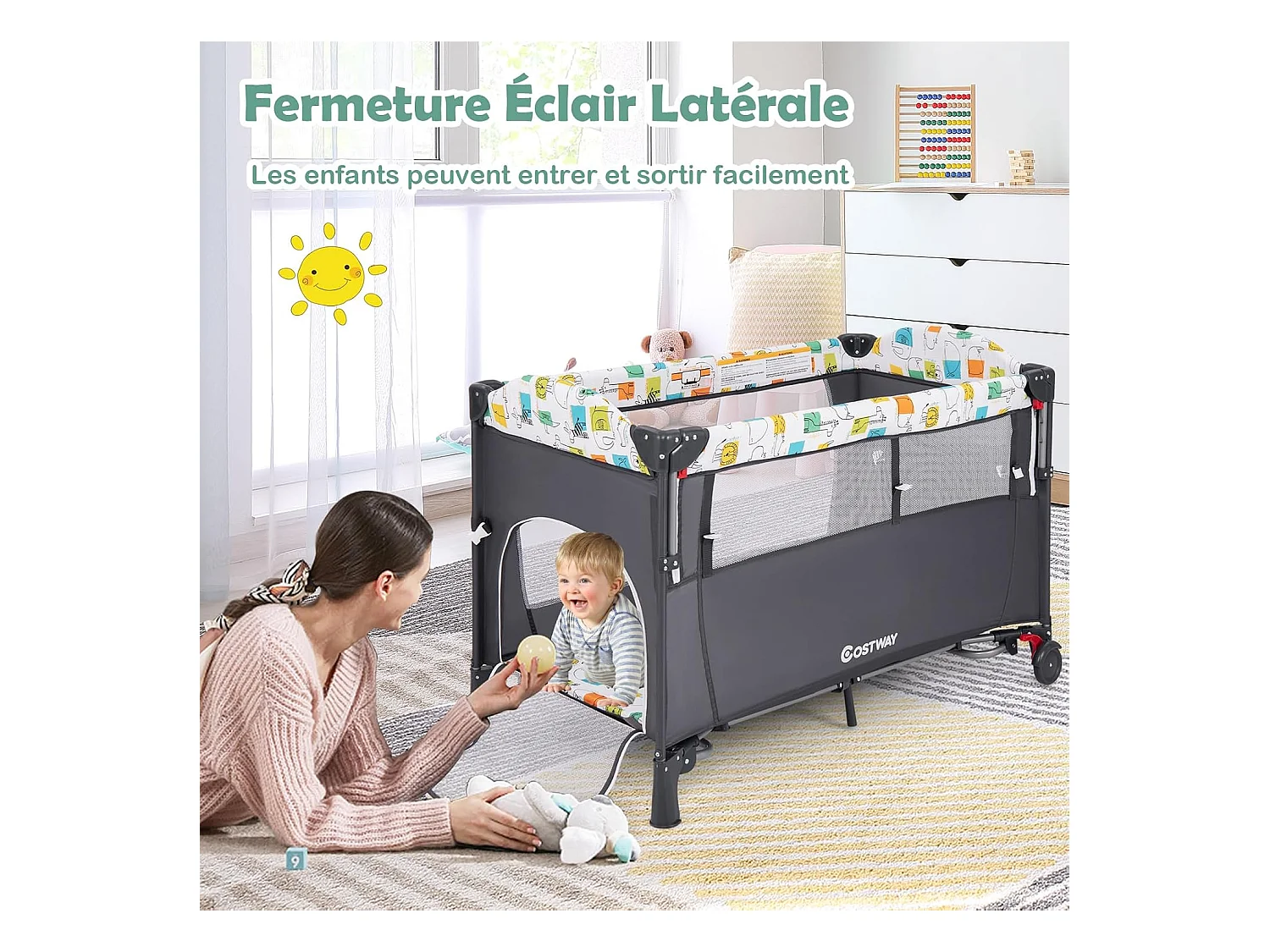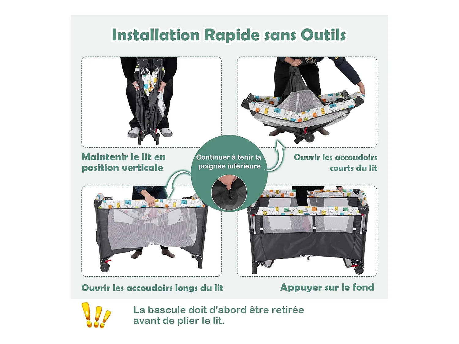 Lit parapluie bébé pliant 5 en 1 ,4 hauteurs d'accoudoir réglables