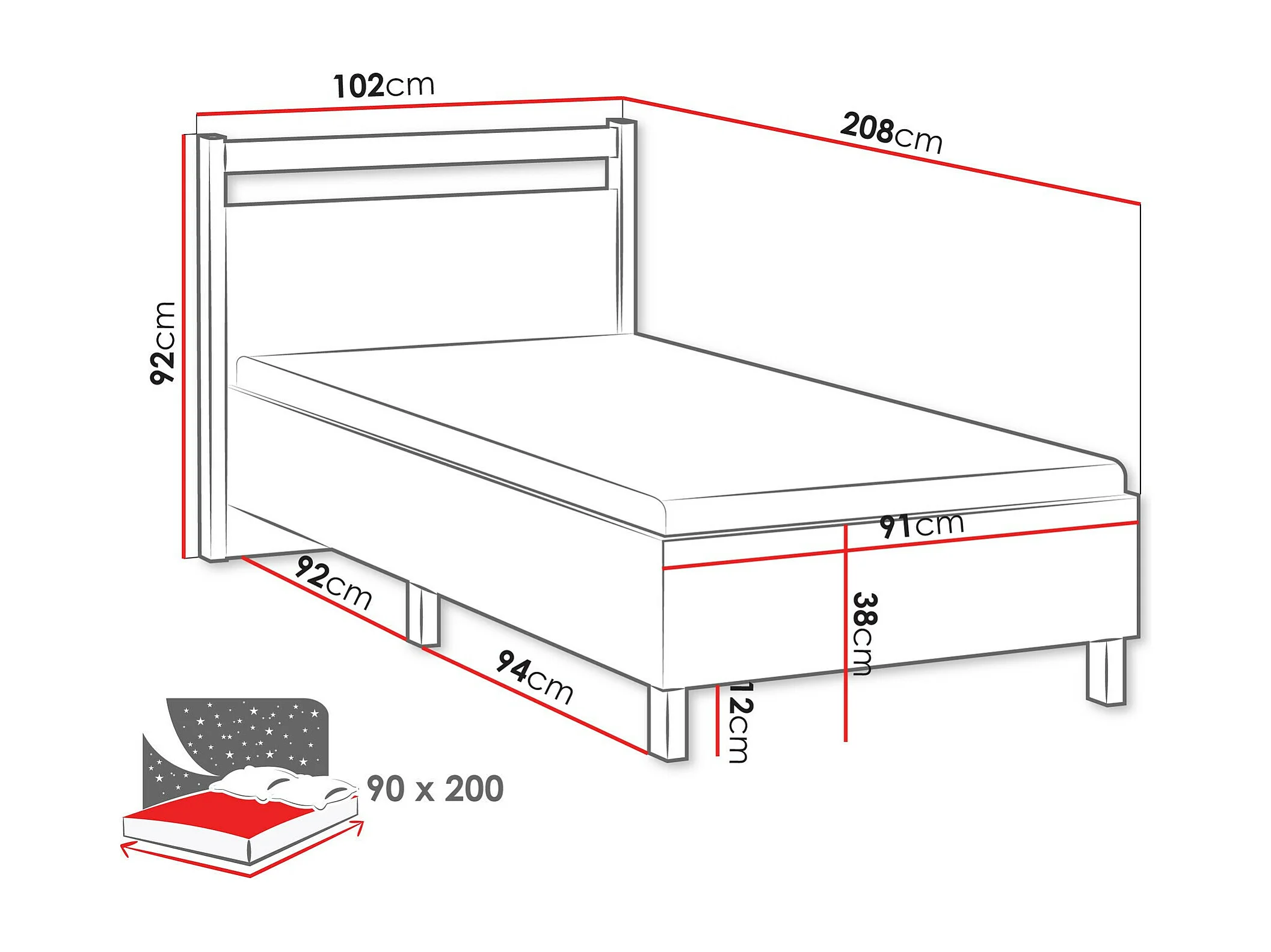 Lit Venmelu 107, Unique, Brun clair, 90x200, Bois|Stratifié, Disponible, 102x208x92cm
