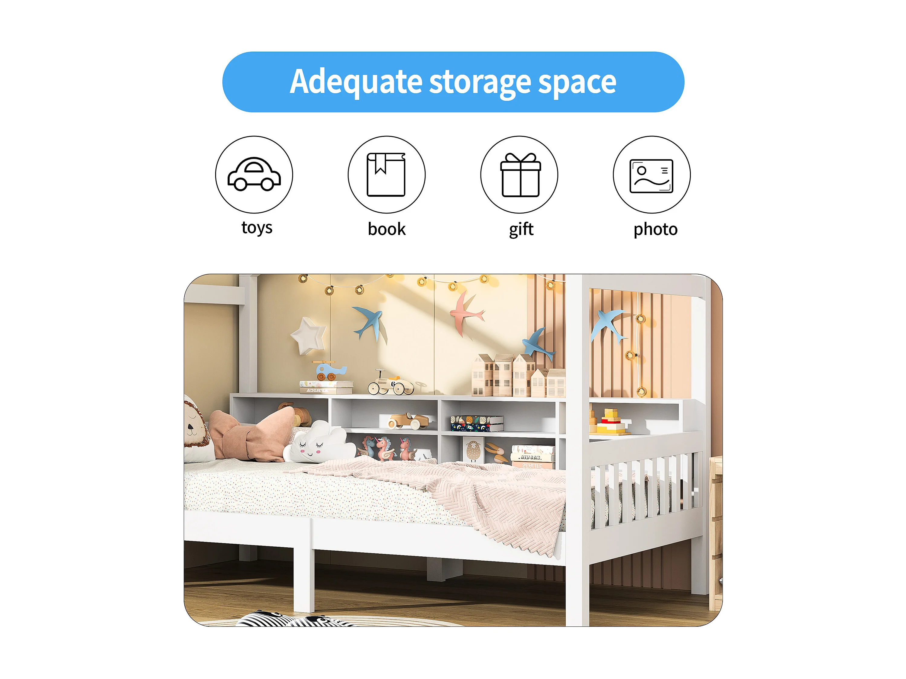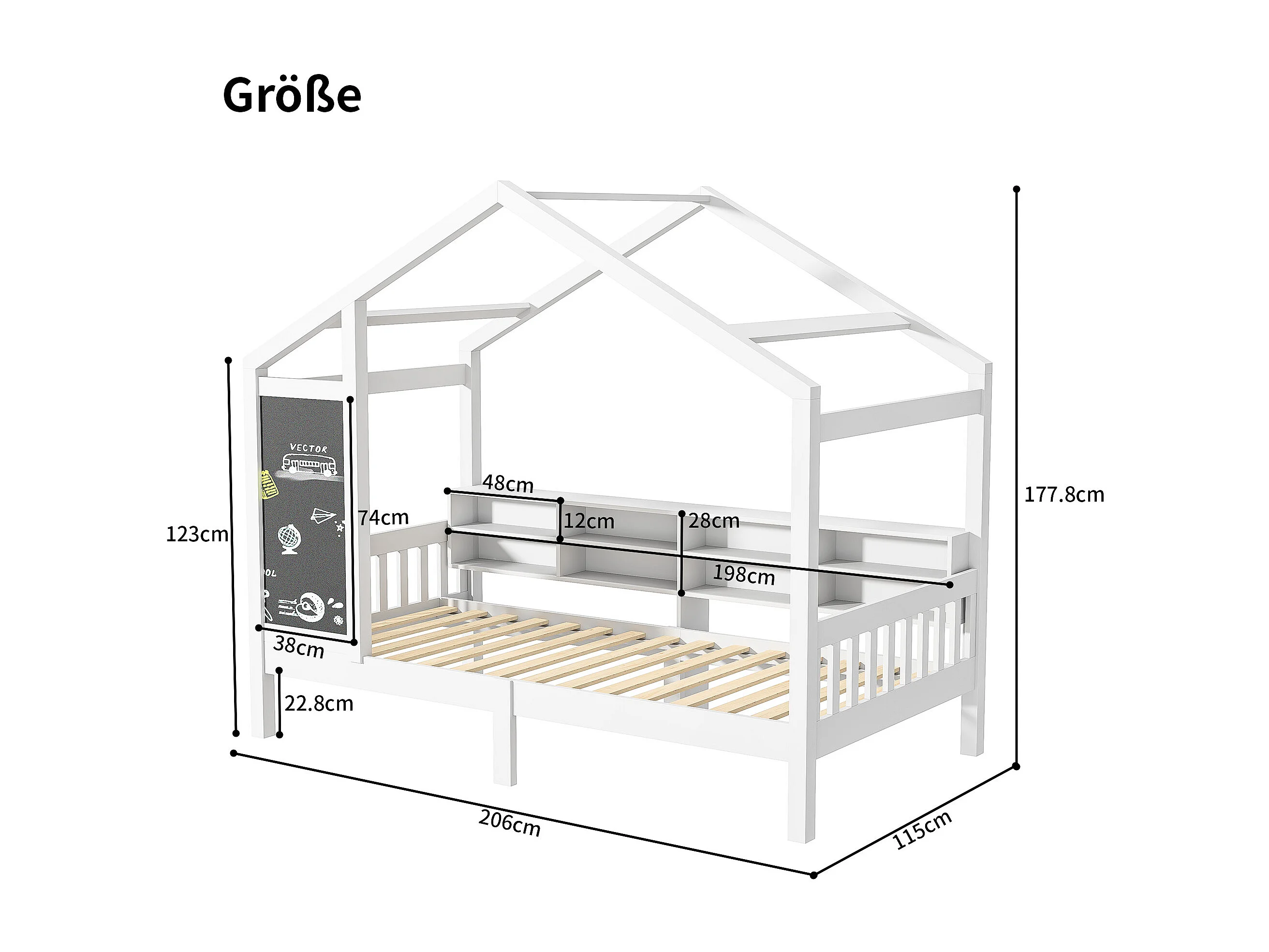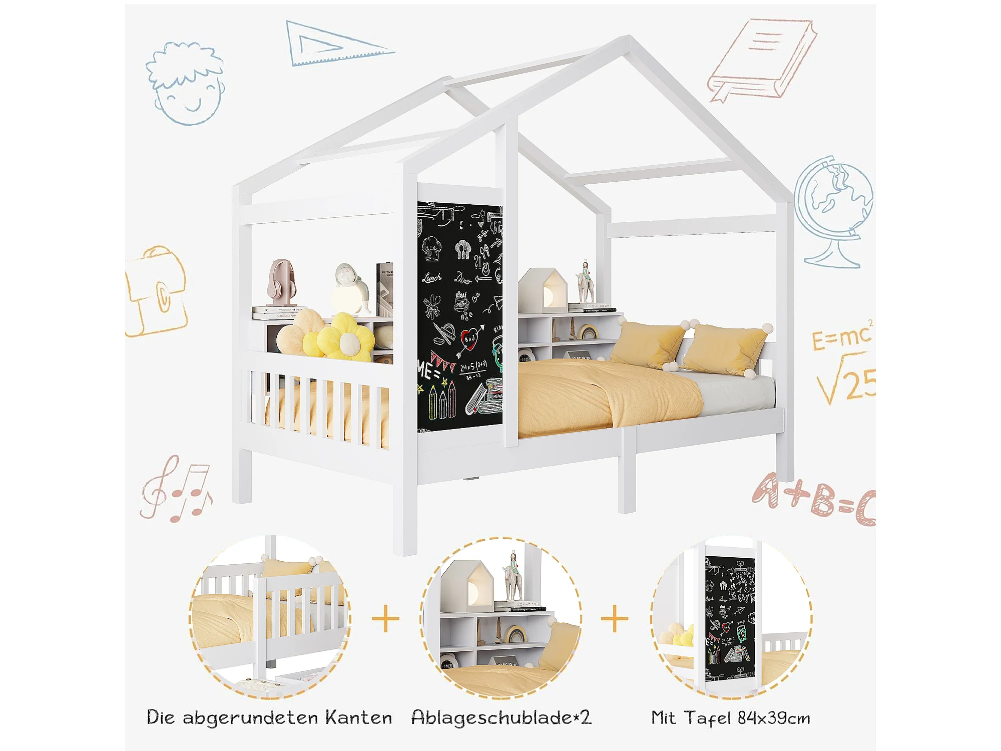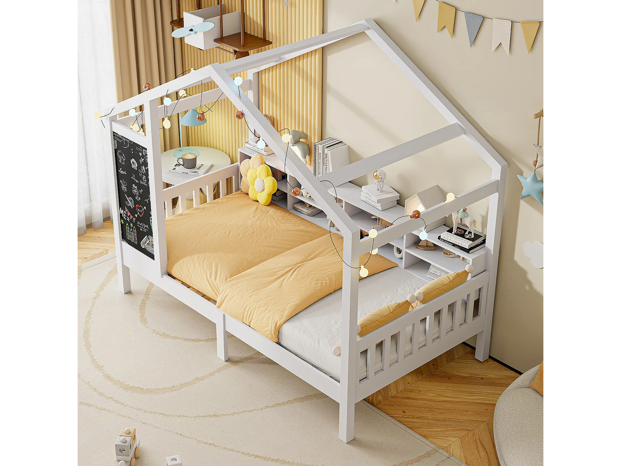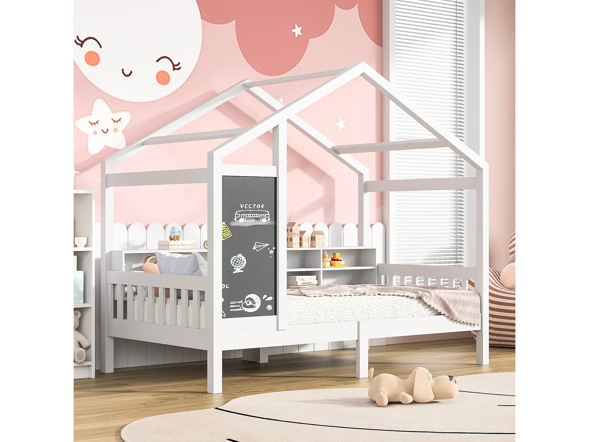 Lit peint en blanc avec tableau noir et étagère 90*200cm