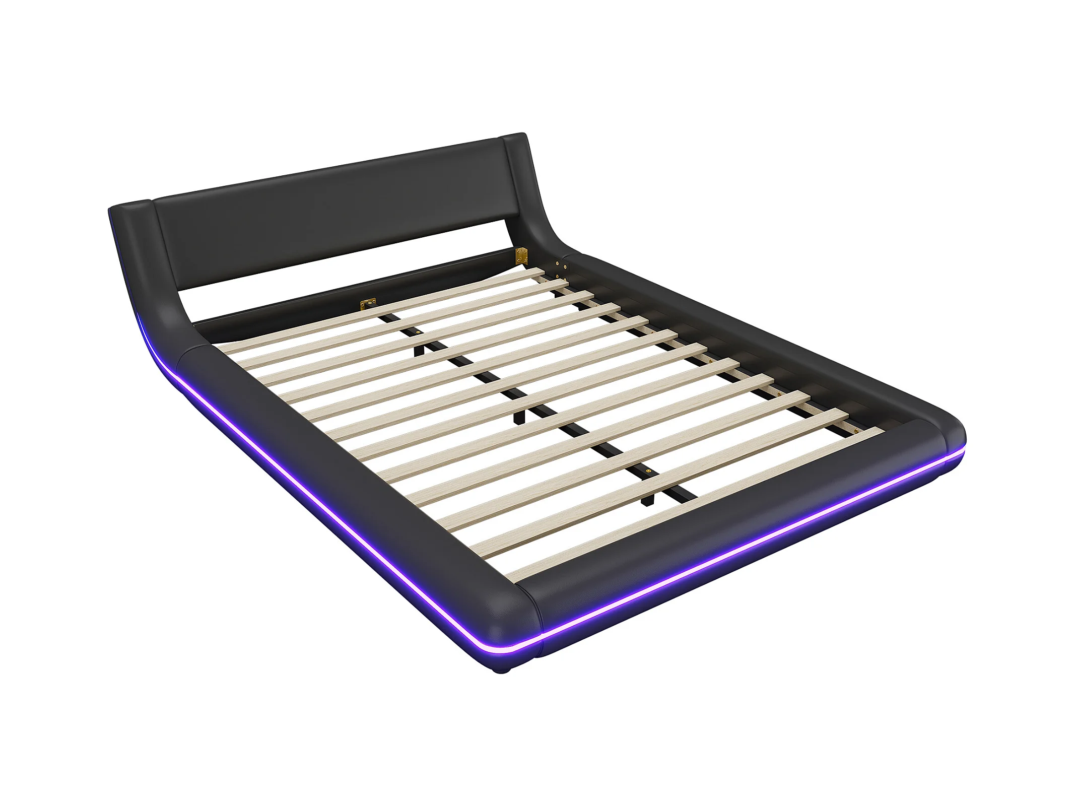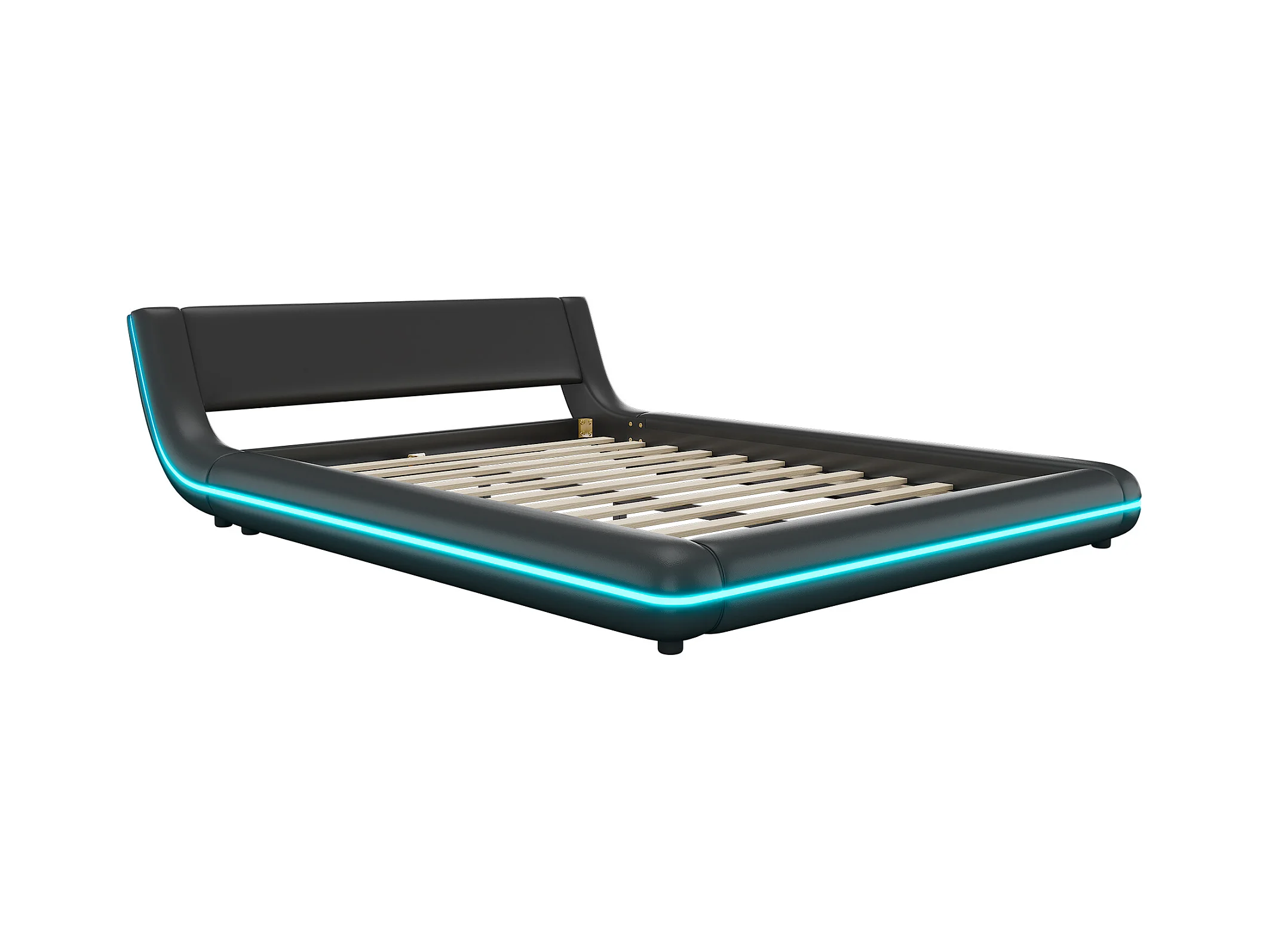 Lit plat 140 x 200 cm avec tête de lit - rembourré en cuir PU - LEDs - style élégant - noir