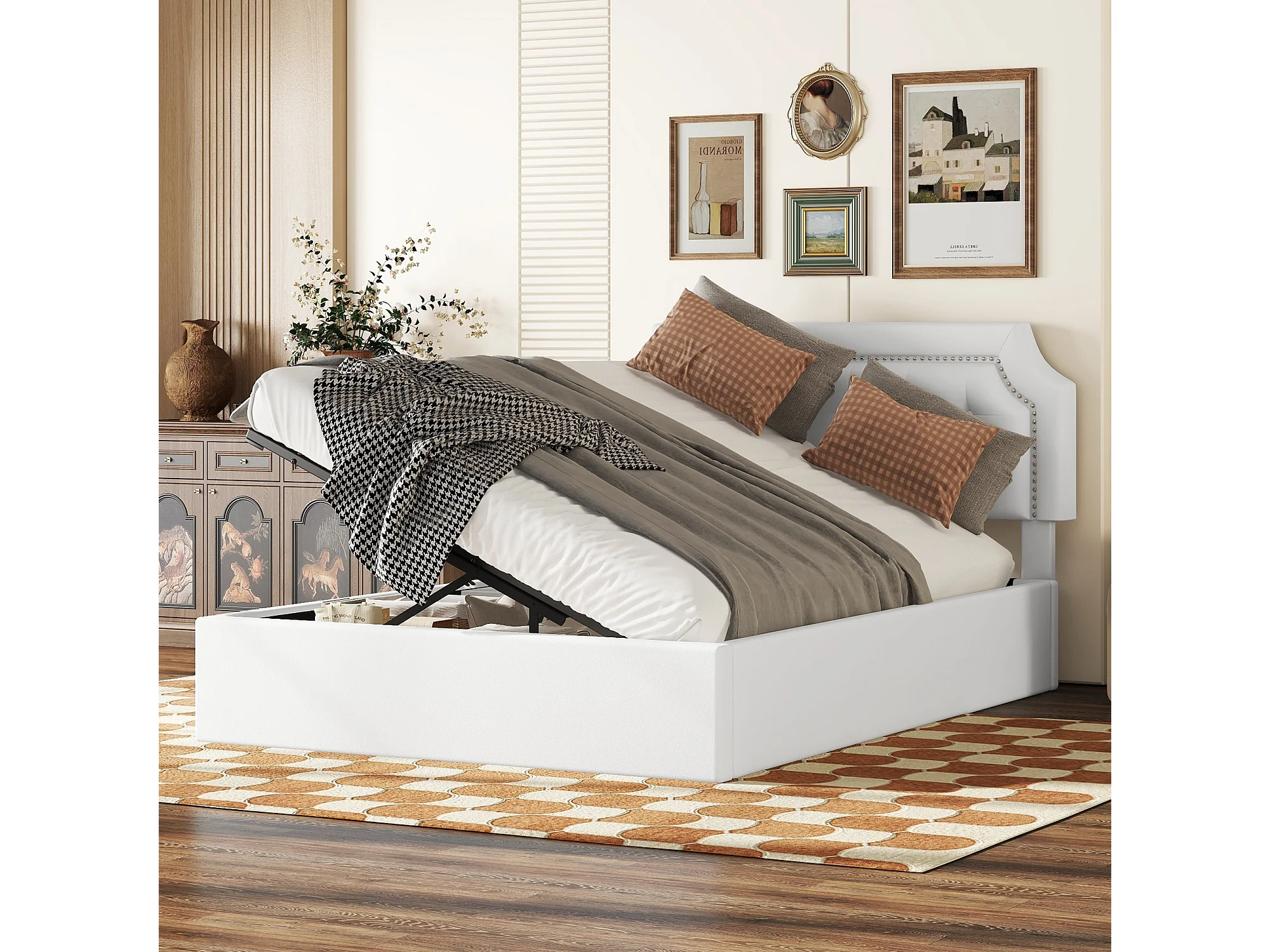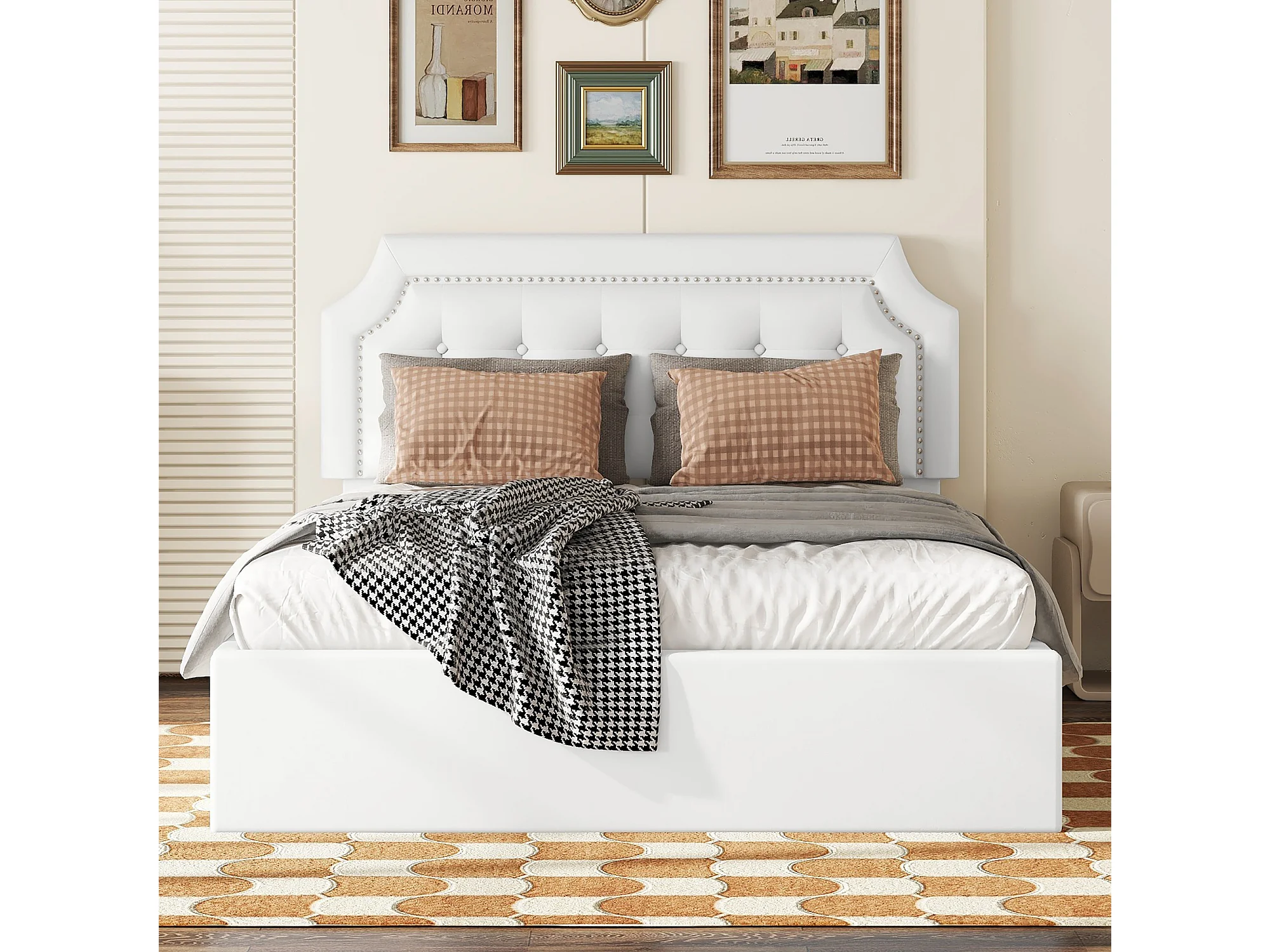Lit plat rembourré blanc 140 * 200cm, Design minimaliste, intérieur élégant
