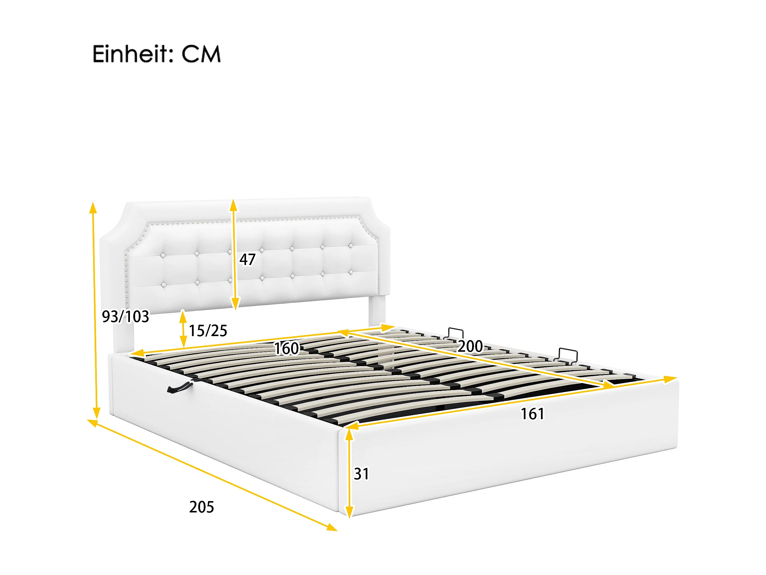 Lit plat rembourré blanc 160 * 200cm, Design minimaliste, intérieur élégant