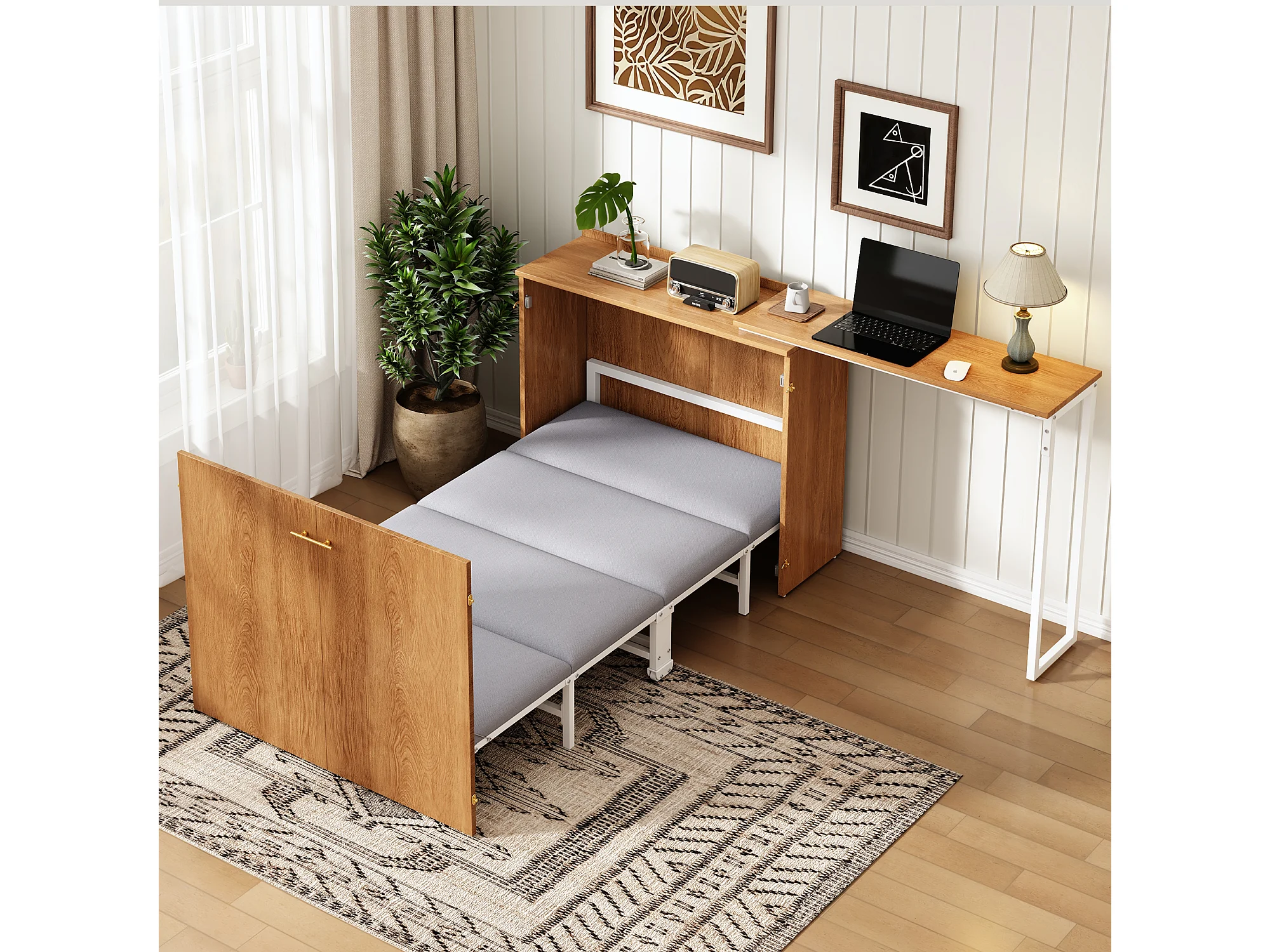 Lit pliant 90x200 cm – Avec bureau pivotant – Naturel