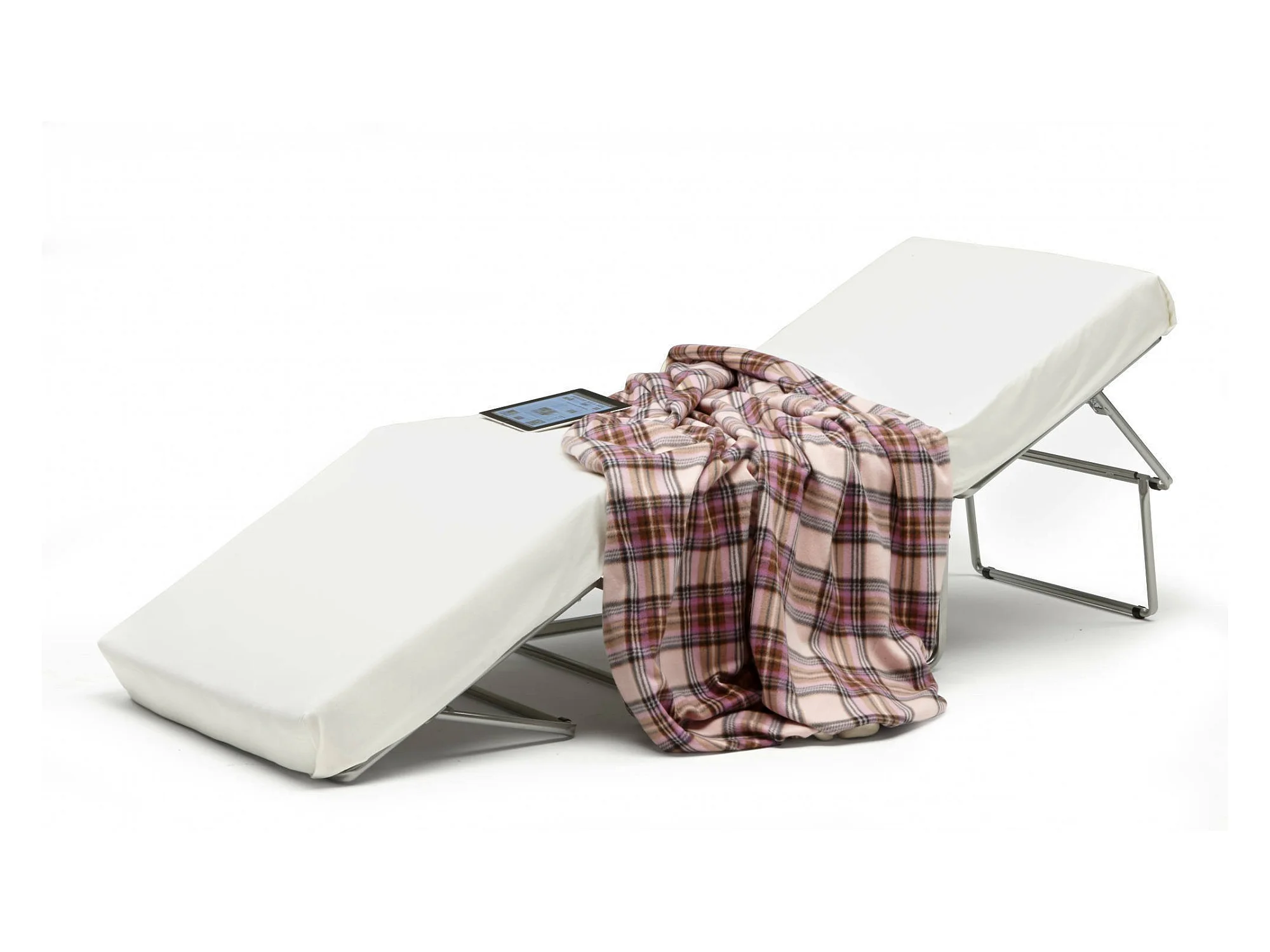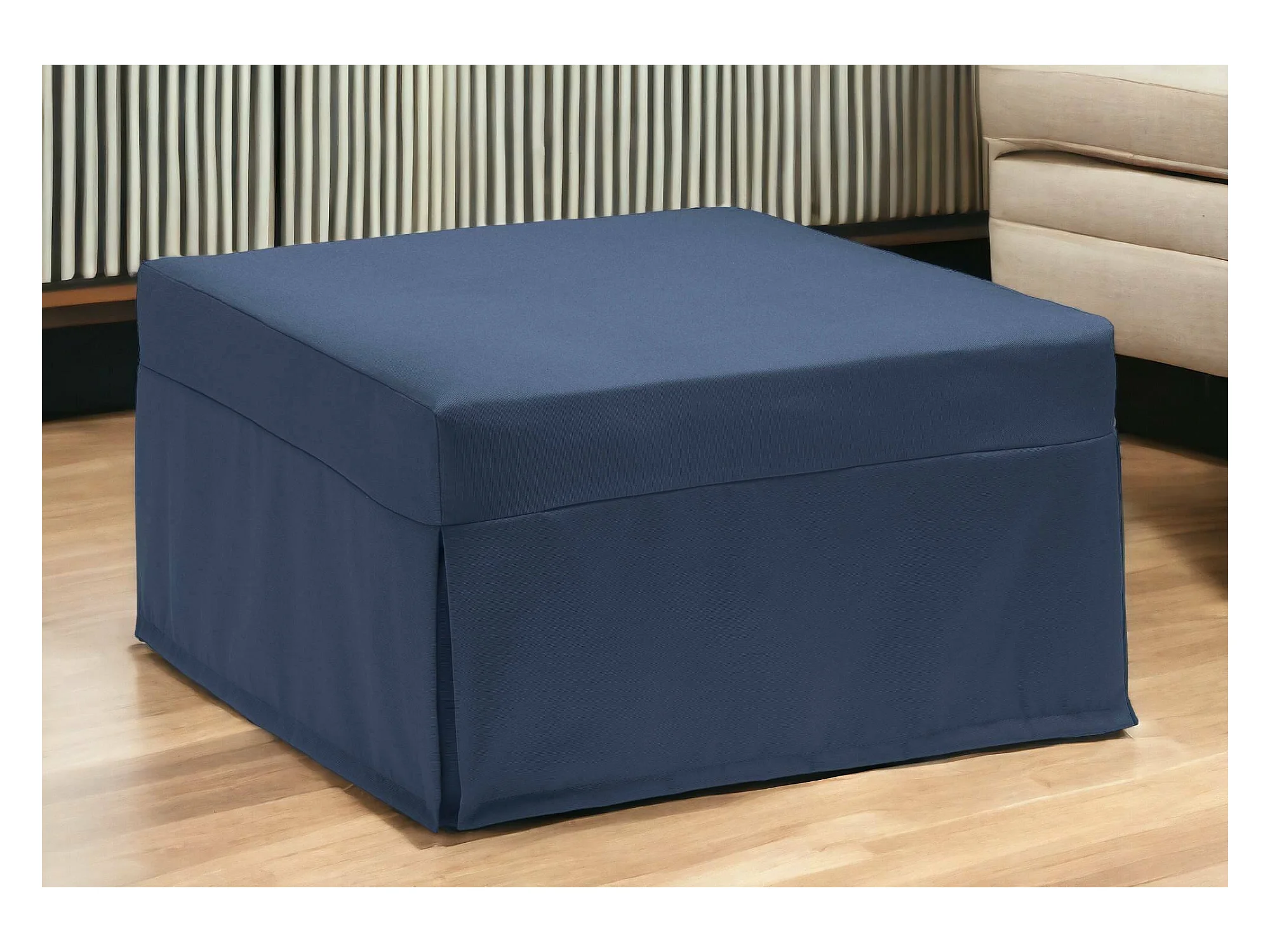 Lit pliant Ancilla, Pouf transformable en lit simple, Pouf de salon en tissu, 100% Made in Italy, 80x80h45 cm, Bleu