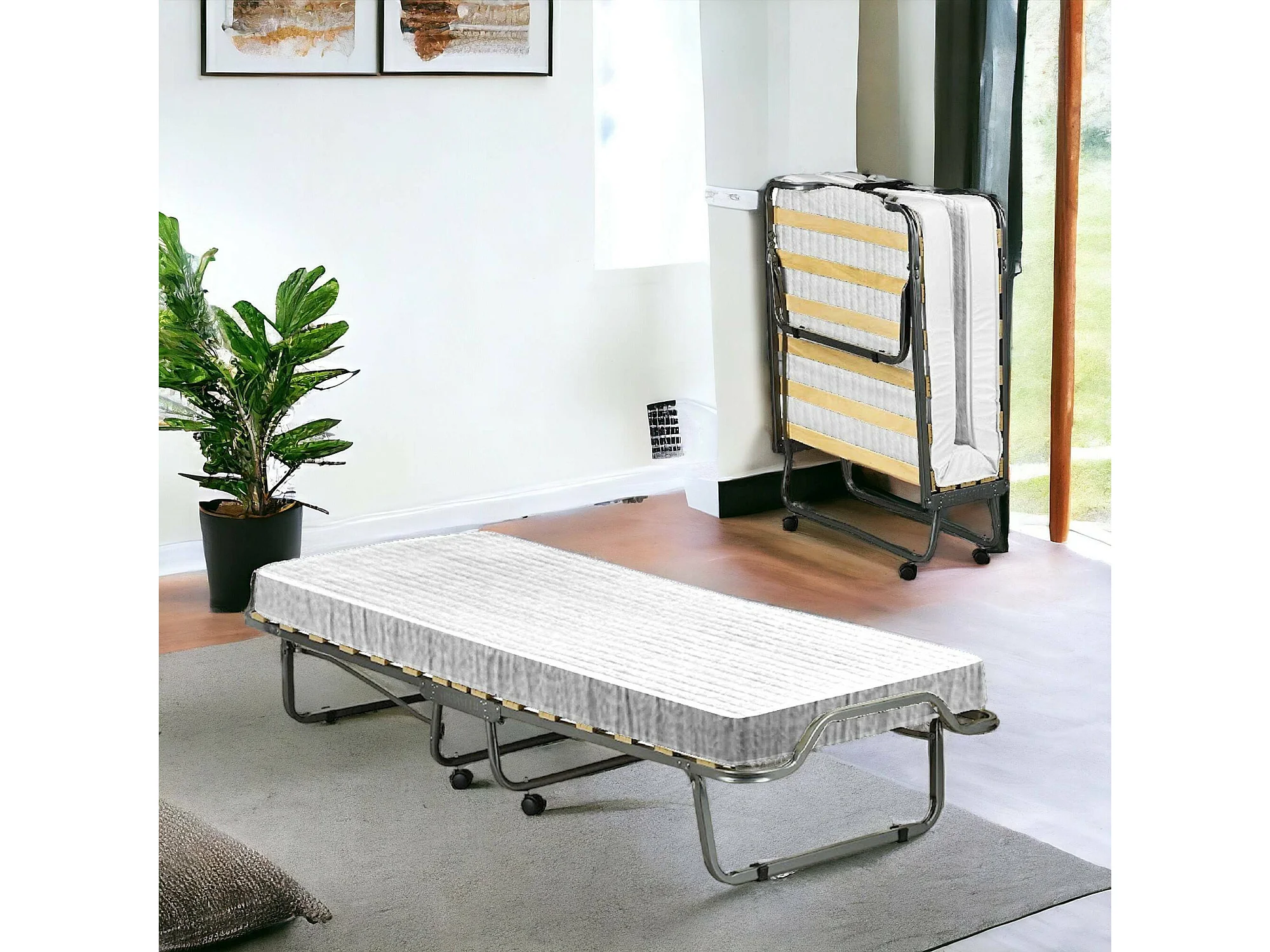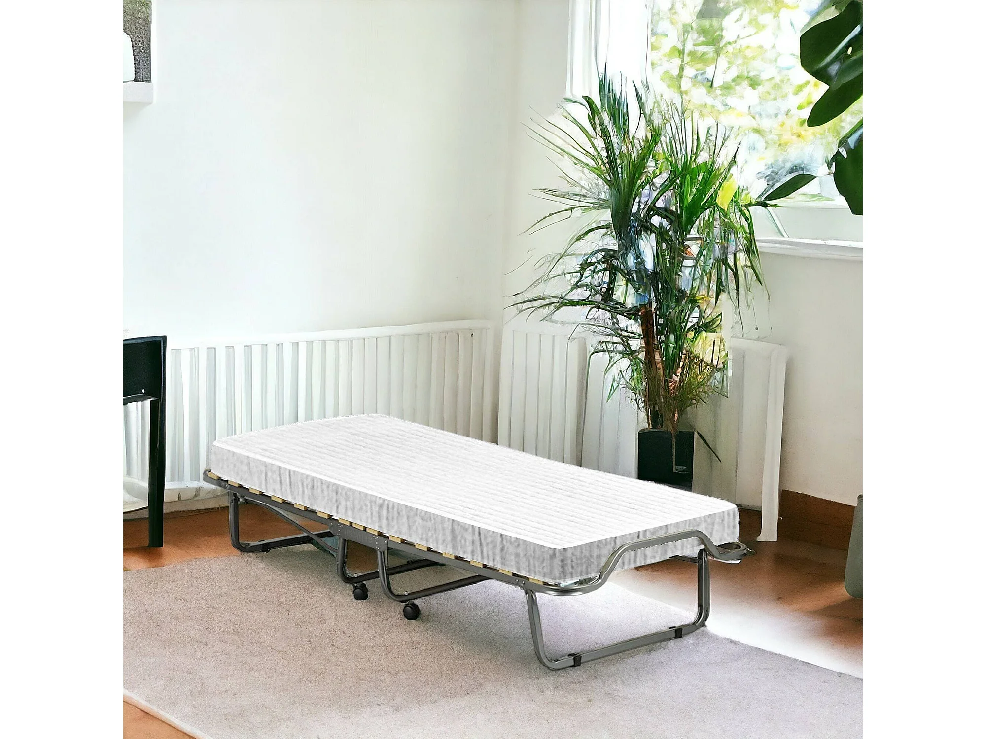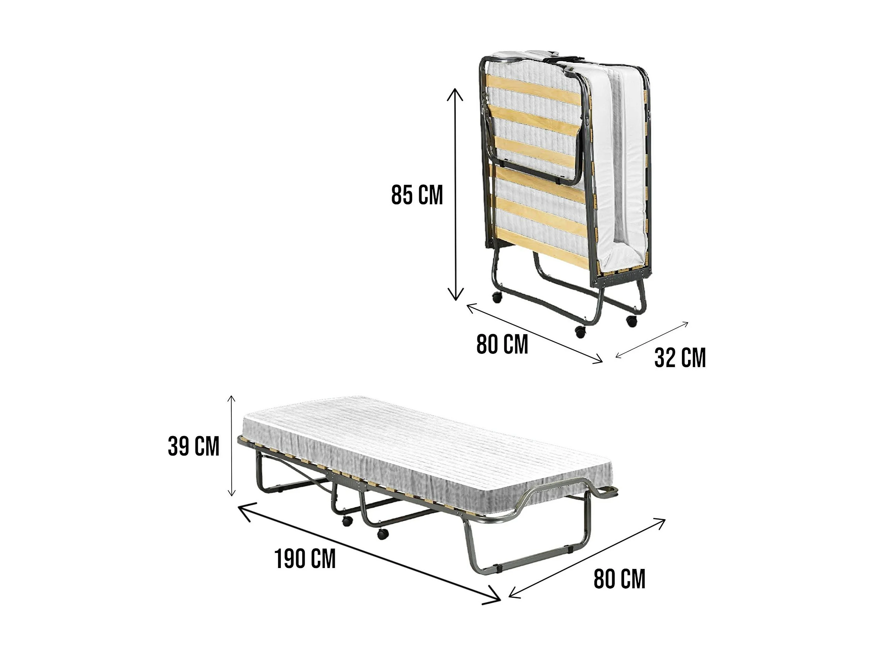 Lit pliant Dpiate, Lit de camp à 15 lattes, Matelas inclus, Lit bébé peu encombrant, 100% Made in Italy, 80x190h39 cm, Housse de protection sur demande