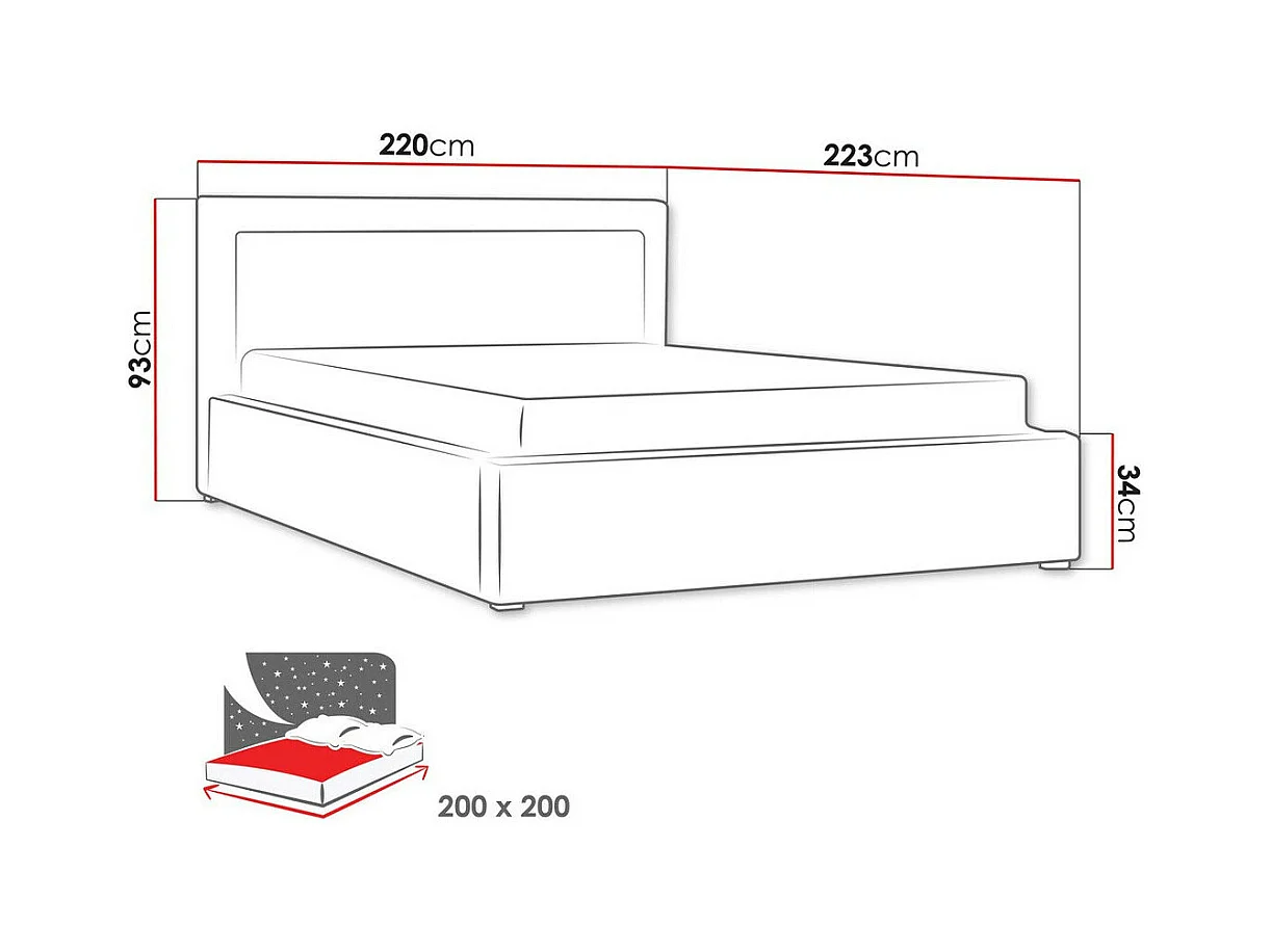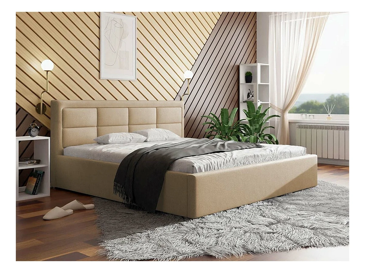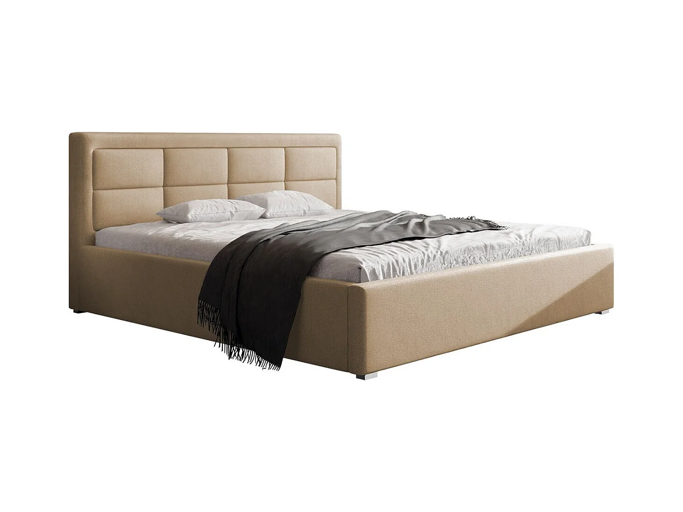 Lit Pomona 102, Double, Brun clair, 200x200, Tapisserie, Sommier à lattes, 220x223x93cm