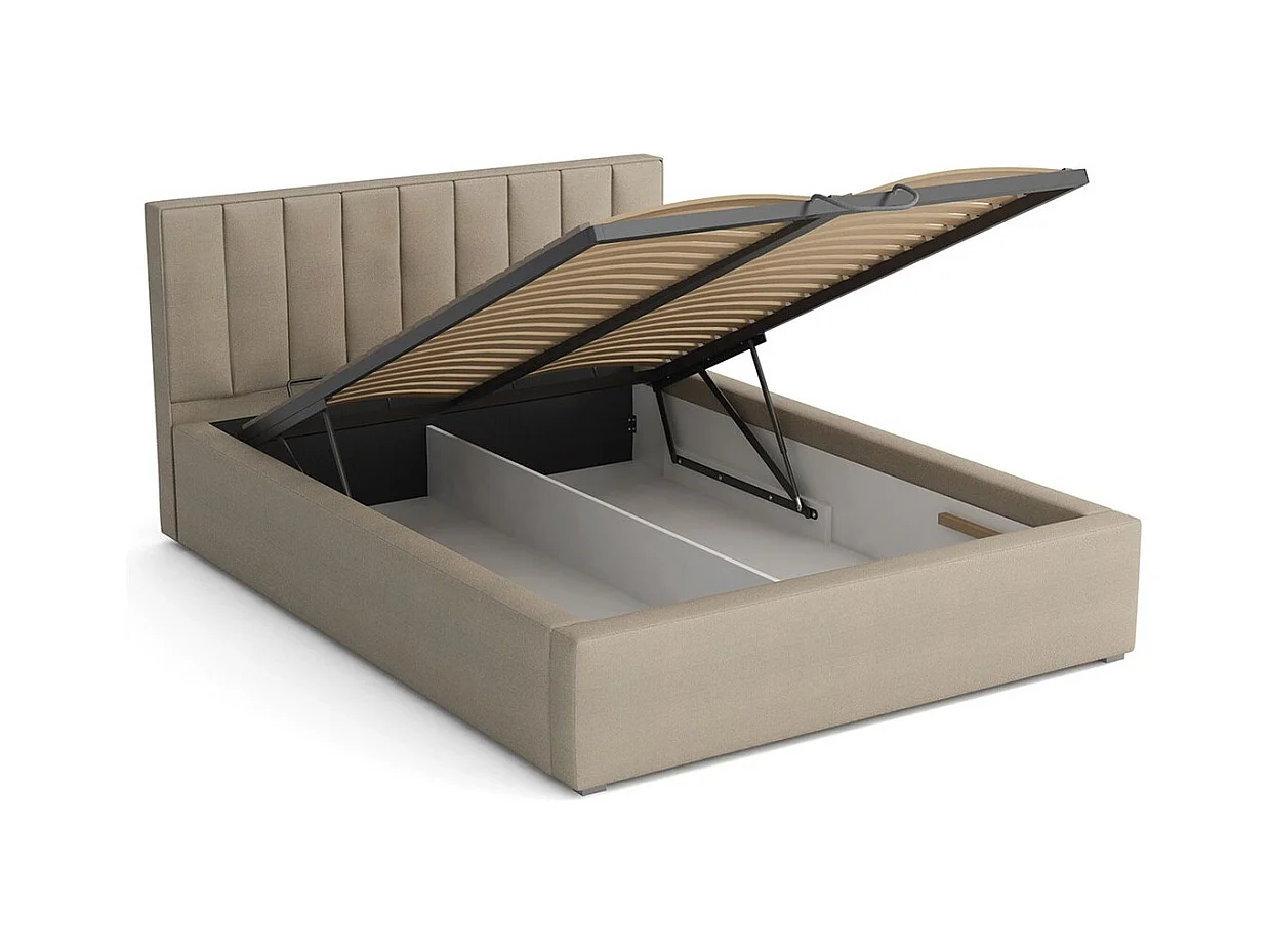 Lit Pomona 109, Double, Gris, 160x200, Tapisserie, Sommier à lattes, 180x223x93cm